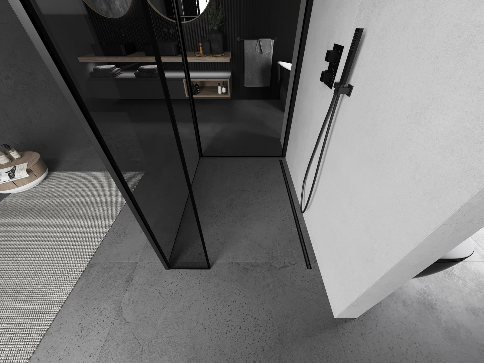 Mexen Kioto pregradna stena Walk-in 130 x 90 x 30 cm, črn okvir, črna - 800-130-090-221-70-70-030