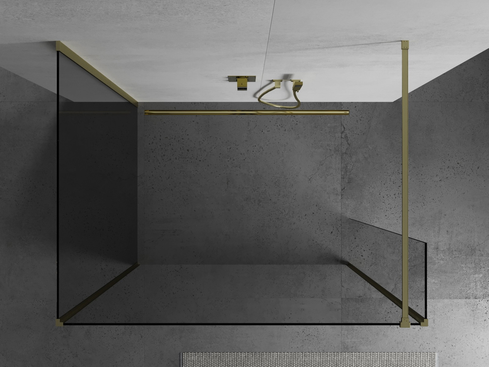 Mexen Kioto tuš stena Walk-in 140 x 90 x 40 cm, prozorna, zlato brušena - 800-140-090-221-55-00-040