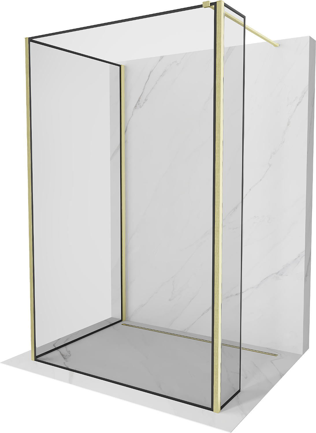 Mexen Kioto tuš stena Walk-in 110 x 90 x 40 cm, črn okvir, brušeno zlato - 800-110-090-221-55-70-040