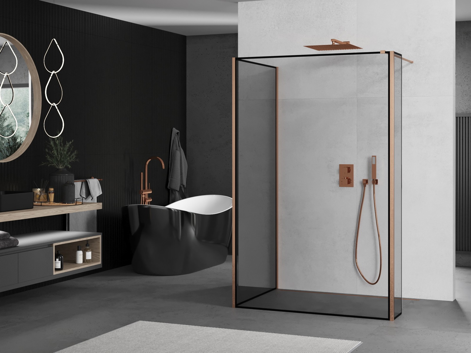 Mexen Kioto tuš stena je elegantna rešitev za vsako kopalnico. Zaradi velikih dimenzij 110x70x40 cm, vključno z dolžino stene X 110 cm, zagotavlja udobje pri uporabi. Univerzalna montaža ter črni okvir dodajata sodoben videz, ščetkana medenina pa zagotavlja luksuzen videz. Kaljeno steklo debeline 8 mm in aluminijasti profil zagotavljata trajnost. Nosač iz nerjavečega jekla z maksimalno dolžino 150 cm je mogoče obrezati. Premaz, ki olajša čiščenje, in možnost izravnave neravnin na steni sta dodatni prednosti izdelka.