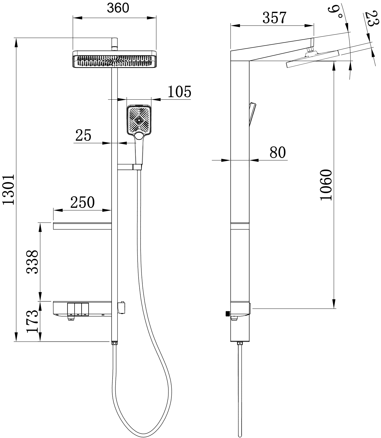 Baterija za prho s polico za kozmetiko je funkcionalna rešitev, ki združuje udobje uporabe z estetiko. Polica omogoča shranjevanje kozmetike, mil, šamponov in drugih dodatkov na dosegu roke med kopanjem.