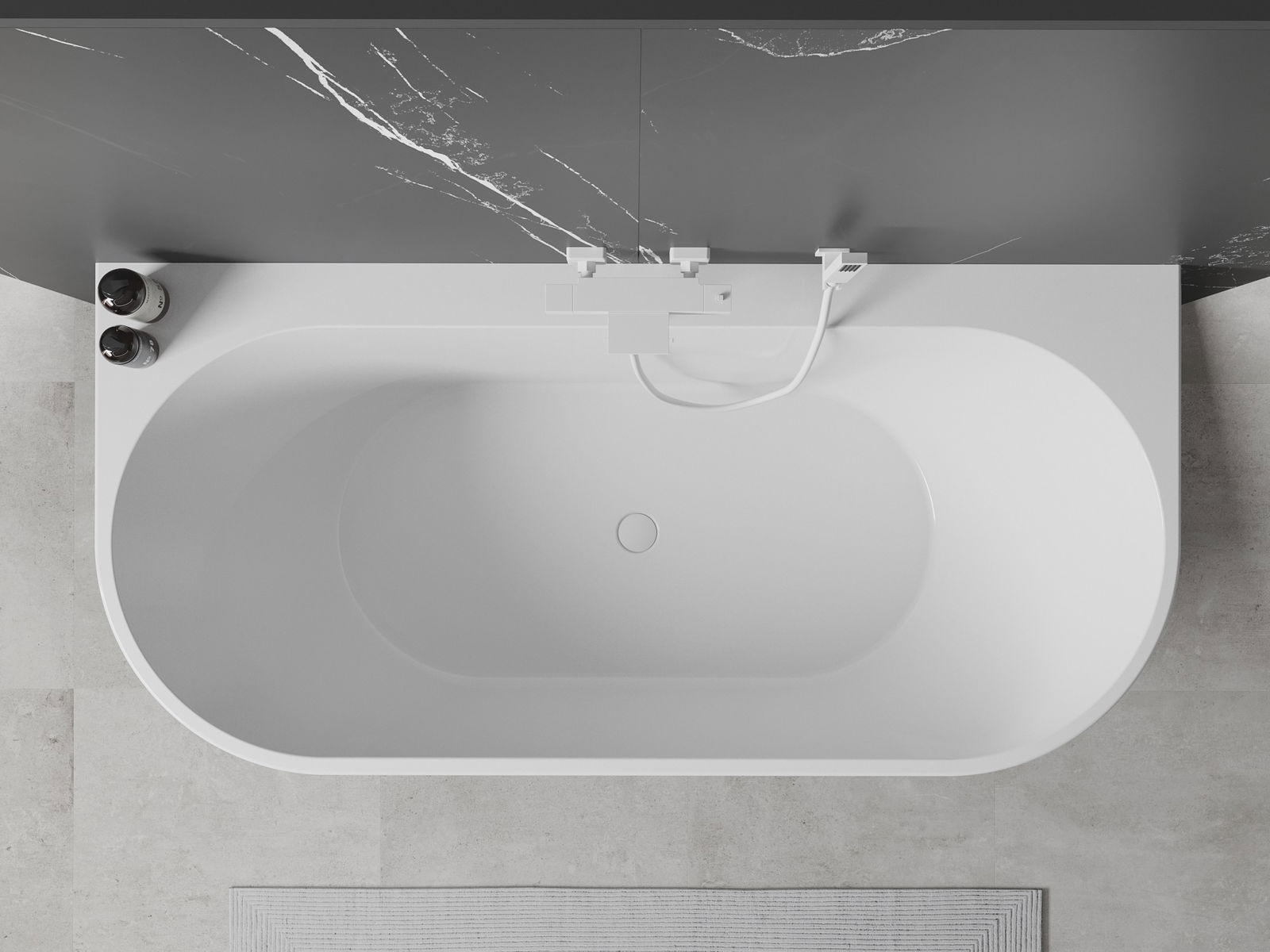 Kopalna ima na eni strani širok rob, ki ustvarja praktično polico. Omogoča priročno shranjevanje mila, kozmetike ali drugih kopalniških pripomočkov na dosegu roke, kar zagotavlja še večje udobje.
