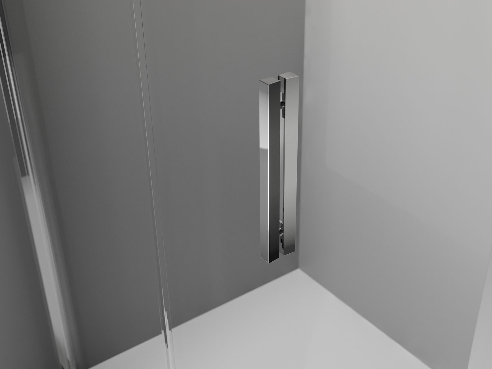 Priročen in udoben ročaj je izdelan iz trpežnega in odpornega kovine. Modna oblika v kombinaciji z zaključkom, ki ustreza barvi profilov, daje celoti sodoben in stilski videz, poudarjajoč estetiko vsake kopalnice.