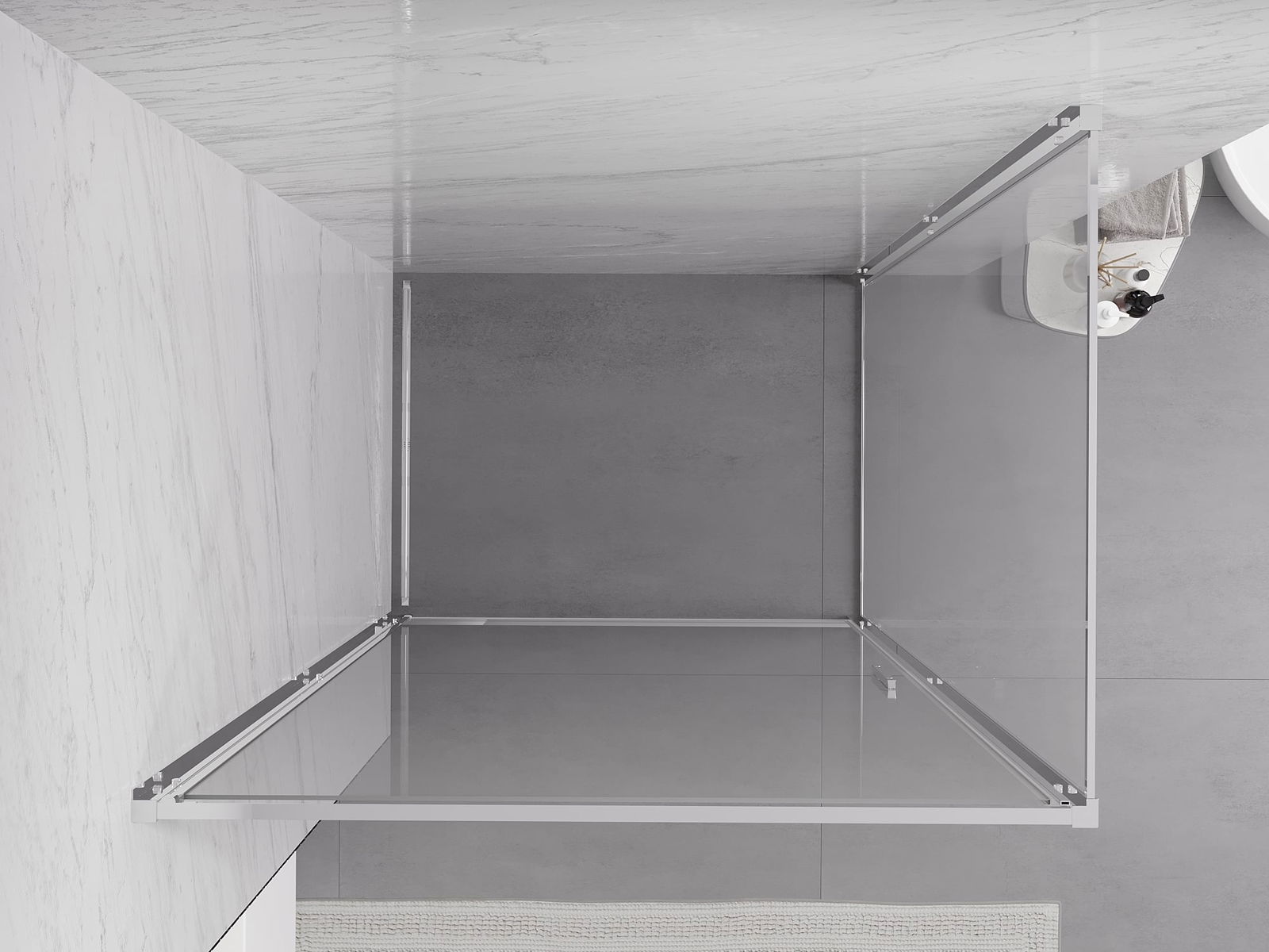 Priročen in udoben ročaj je izdelan iz trpežnega in odpornega kovine. Modna oblika v kombinaciji z zaključkom, ki ustreza barvi profilov, daje celoti sodoben in stilski videz, poudarjajoč estetiko vsake kopalnice.