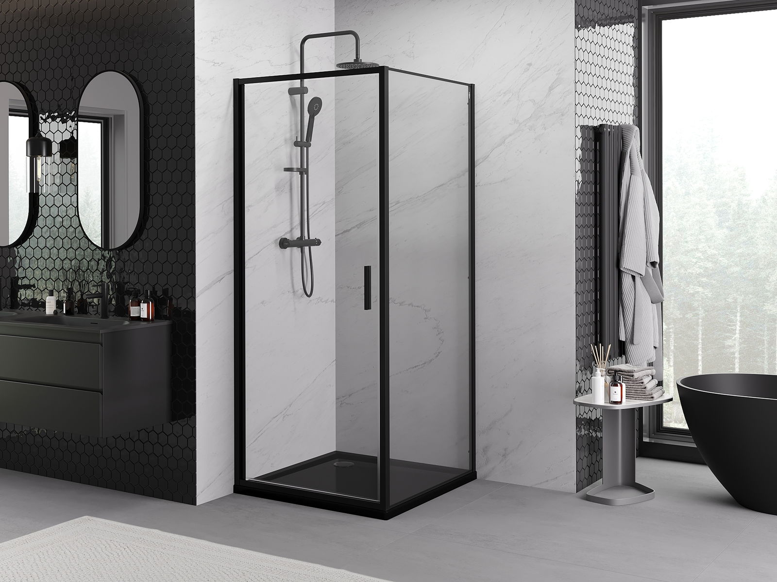 Mexen Rio kvadratna tuš kabina 90 x 90 cm, prozorna, črna - 860-090-090-70-00