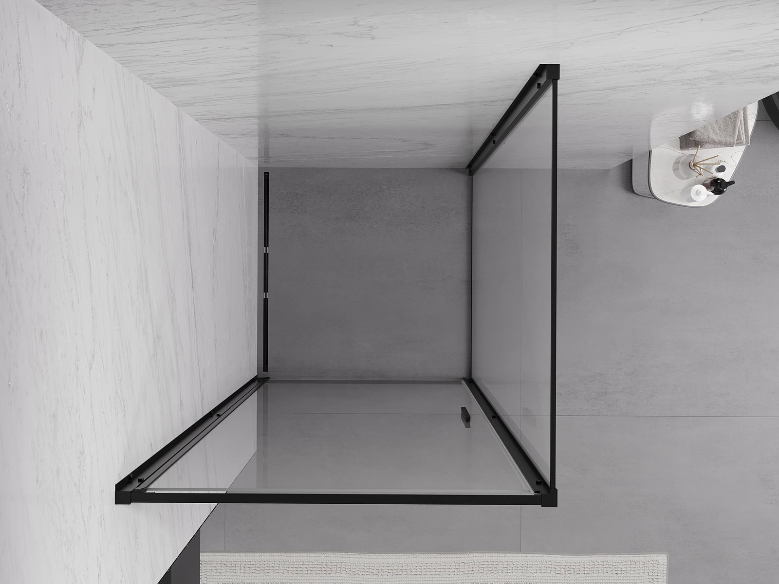 Priročen in udoben ročaj je izdelan iz trpežnega in odpornega kovine. Modna oblika v kombinaciji z zaključkom, ki ustreza barvi profilov, daje celoti sodoben in stilski videz, poudarjajoč estetiko vsake kopalnice.