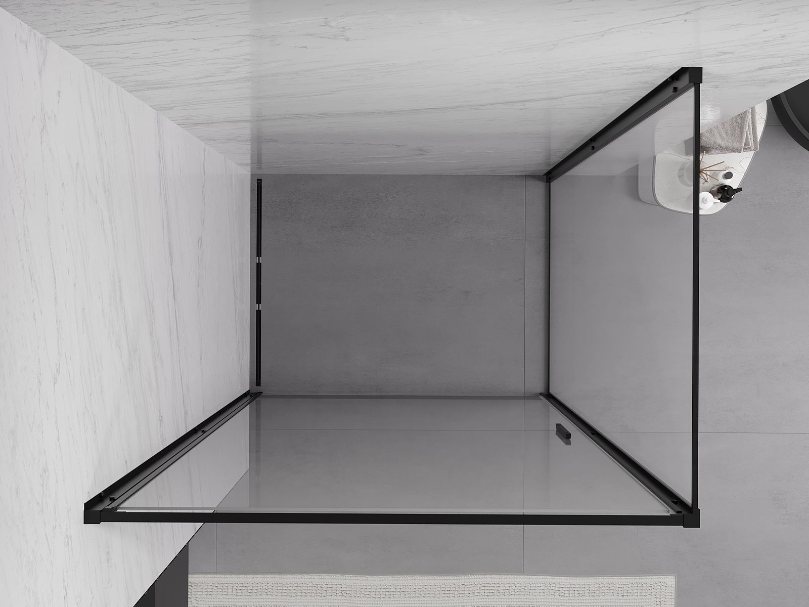 Priročen in udoben ročaj je izdelan iz trpežnega in odpornega kovine. Modna oblika v kombinaciji z zaključkom, ki ustreza barvi profilov, daje celoti sodoben in stilski videz, poudarjajoč estetiko vsake kopalnice.