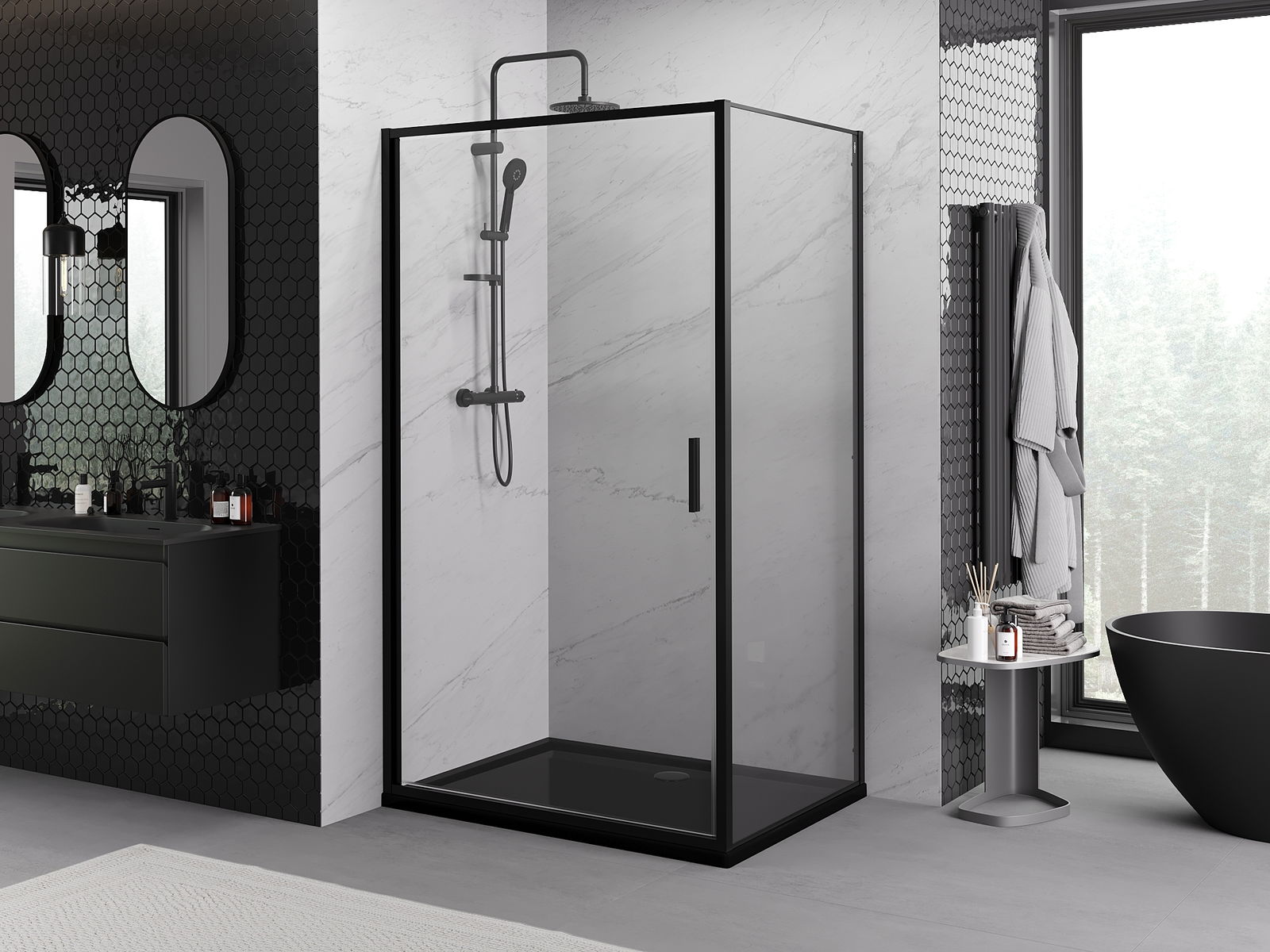 Mexen Rio kvadratna tuš kabina 90 x 90 cm, prozorna, črna - 860-090-090-70-00