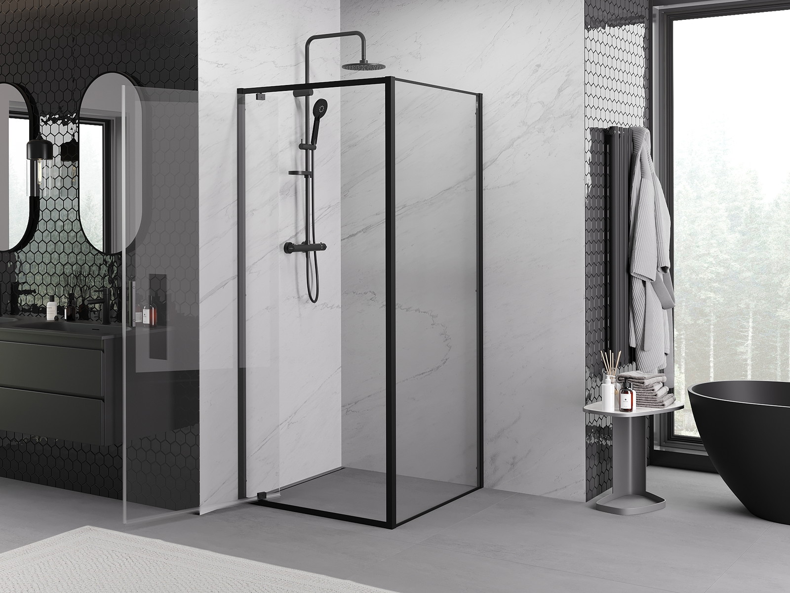 Mexen Exo nihajna tuš kabina 80 x 80 cm, prozorna, črna - 8181-080-080-70-00