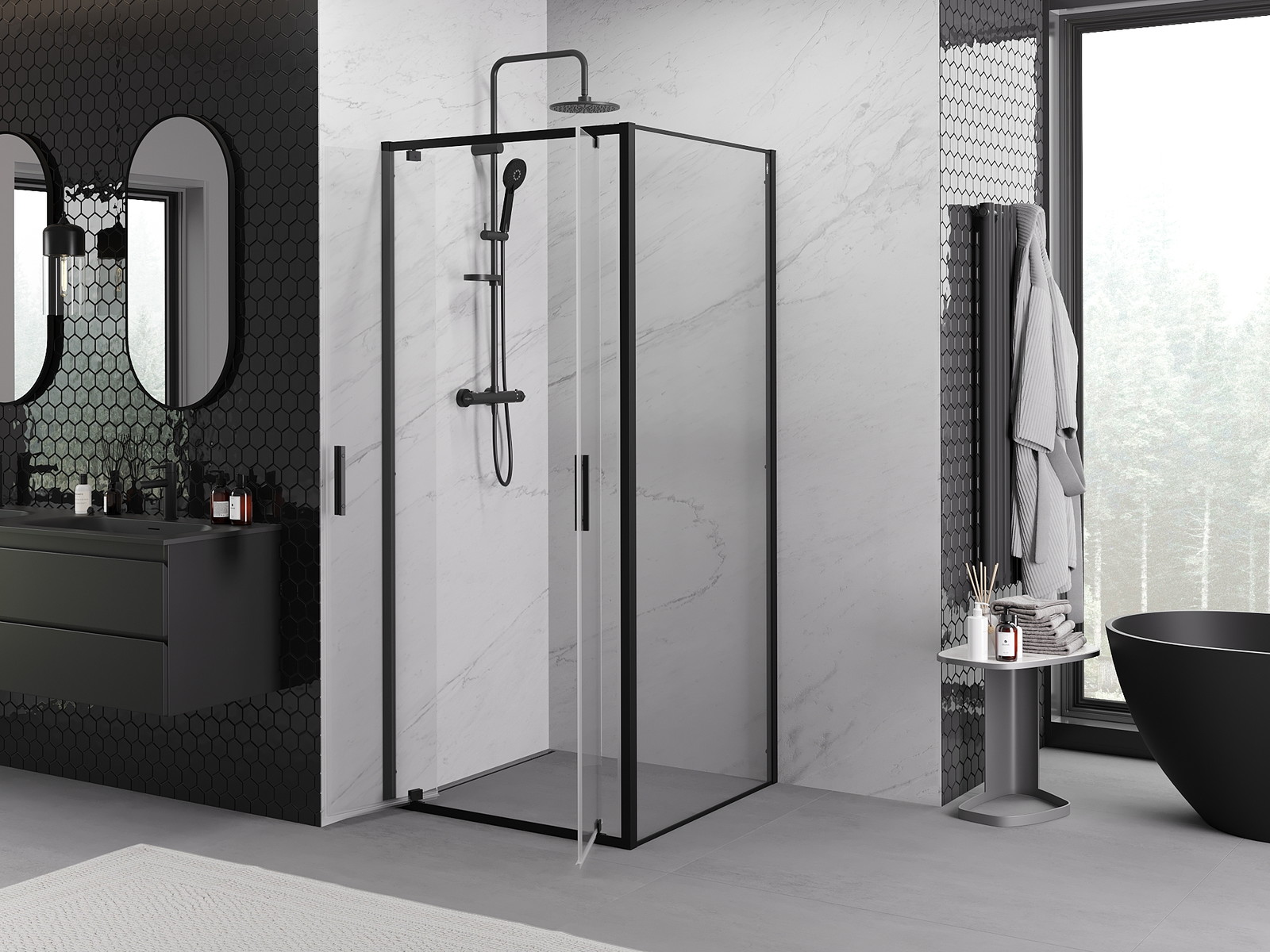 Mexen Exo nihajna tuš kabina 100 x 100 cm, prozorna, črna - 8182-100-100-70-00