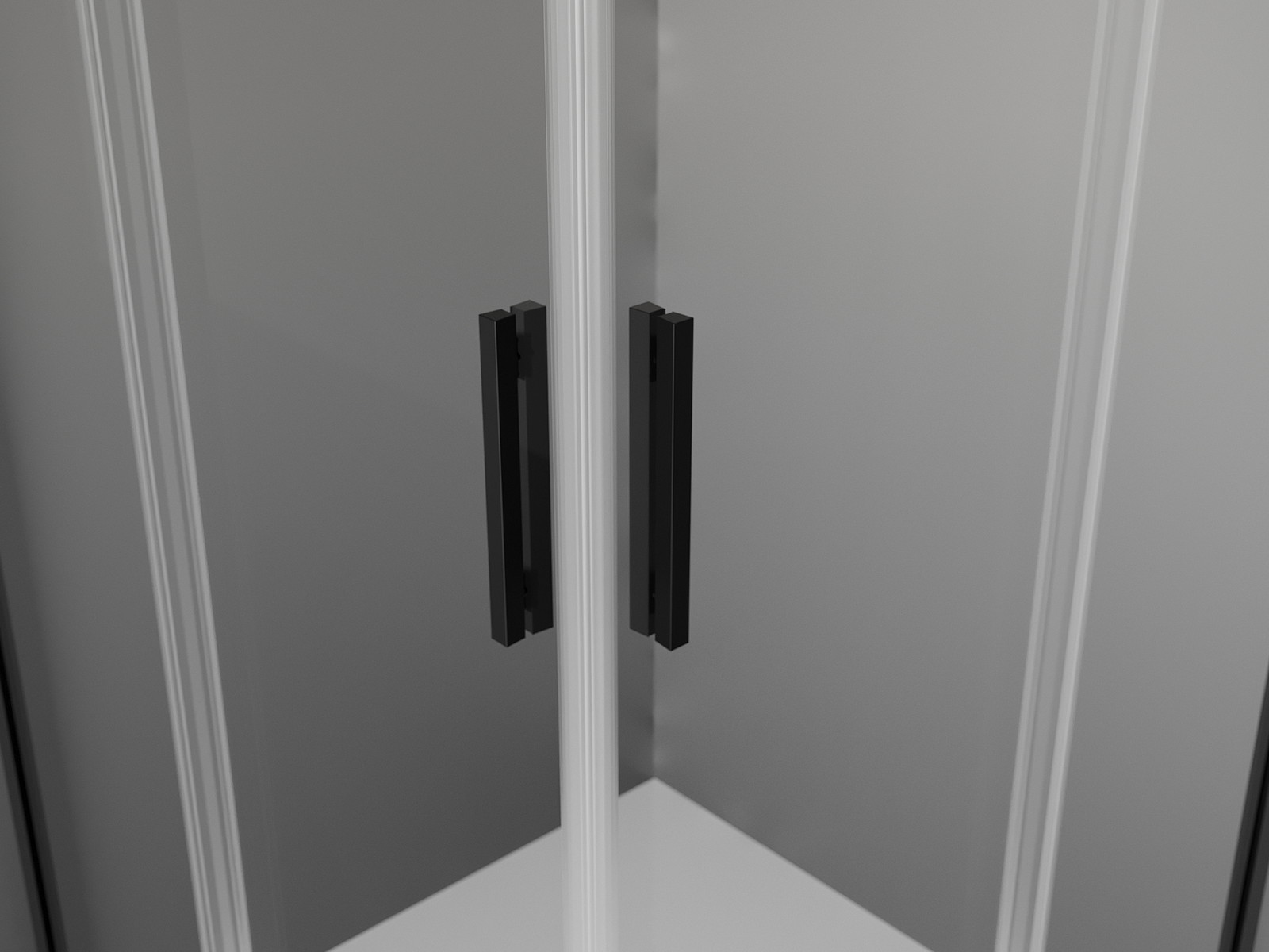 Priročen in udoben ročaj je izdelan iz trpežnega in odpornega kovine. Modna oblika v kombinaciji z zaključkom, ki ustreza barvi profilov, daje celoti sodoben in stilski videz, poudarjajoč estetiko vsake kopalnice.