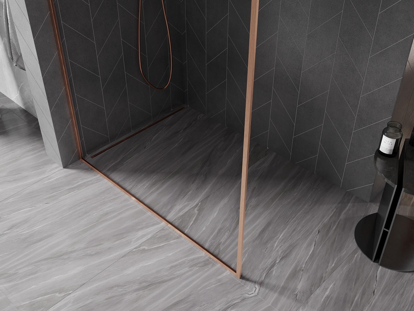 Mexen Kioto-F je moderna tuš stena Walk-in z dimenzijami 115 x 202 cm, katere prozorno, kaljeno steklo debeline 8 mm zagotavlja eleganten videz in trajnost. Univerzalna montaža omogoča namestitev na levi ali desni strani, aluminijasti profil in okvir v barvi brušenega bakra pa dodajata edinstven slog. Dolžino nosilca iz nerjavečega jekla je mogoče prilagoditi do 150 cm, kar omogoča prilagoditev potrebam. Premaz olajša čiščenje, izdelek pa je idealen za montažo na kad ali ploščice.