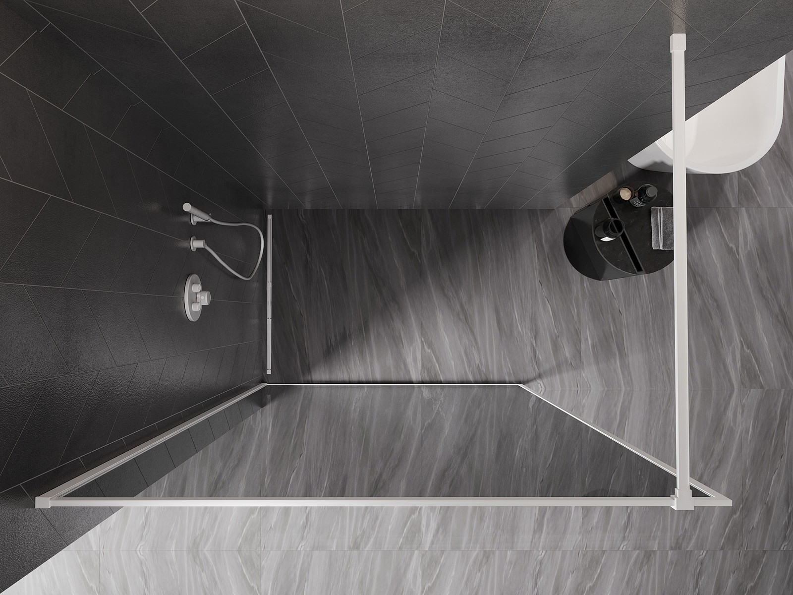 Mexen Kioto-F tuš zaslon Walk-in s okvirjem 140 x 202 cm, grafitna 8 mm, bela - 800-140-104-20-40