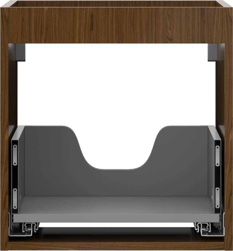 Izrez v predalu je zasnovan tako, da sprejme sifon, ki je nujen v umivalniških instalacijah. S tem je mogoče pohištvo popolnoma funkcionalno namestiti, ne da bi se morali odpovedati prostoru v predalu zaradi instalacije.