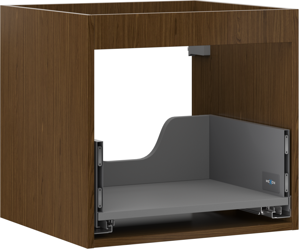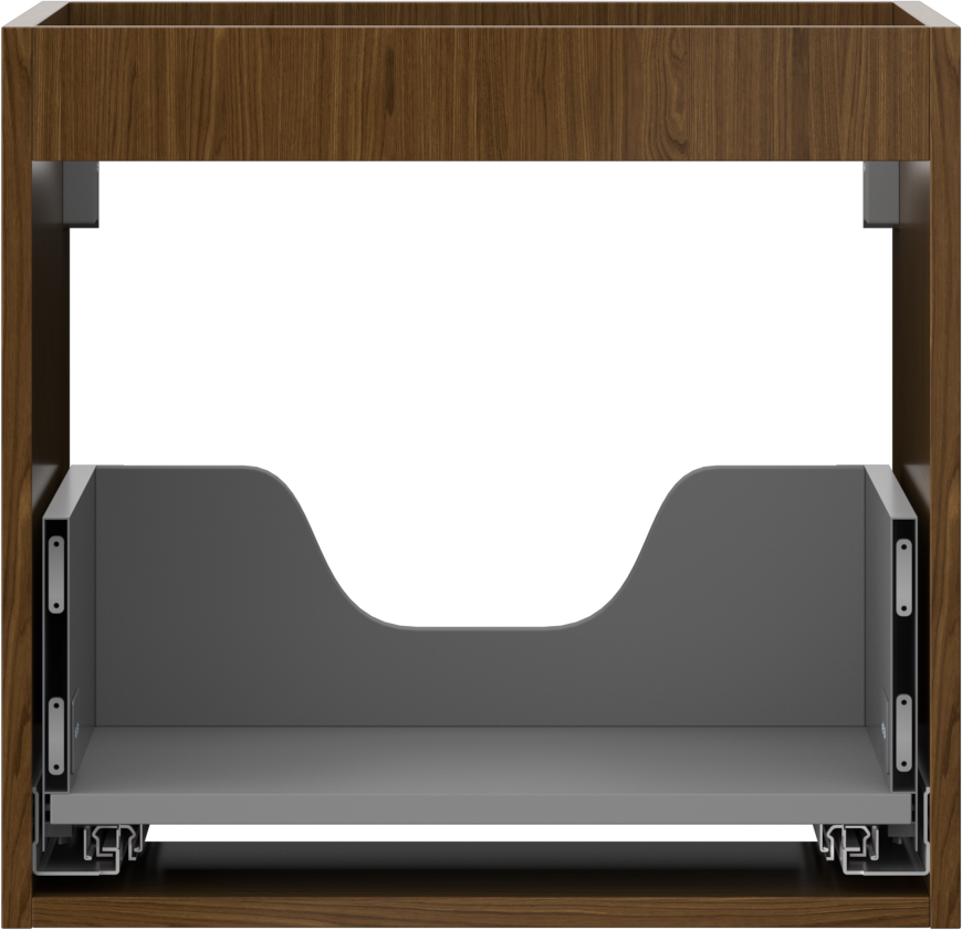 Izrez v predalu je zasnovan tako, da sprejme sifon, ki je nujen v umivalniških instalacijah. S tem je mogoče pohištvo popolnoma funkcionalno namestiti, ne da bi se morali odpovedati prostoru v predalu zaradi instalacije.