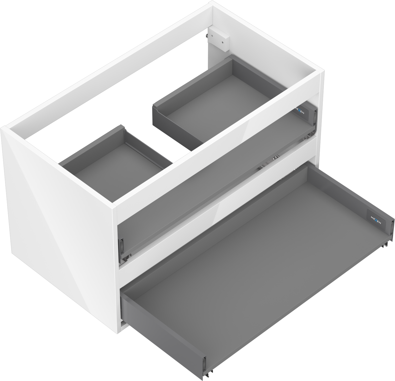 Izrez v predalu je zasnovan tako, da sprejme sifon, ki je nujen v umivalniških instalacijah. S tem je mogoče pohištvo popolnoma funkcionalno namestiti, ne da bi se morali odpovedati prostoru v predalu zaradi instalacije.