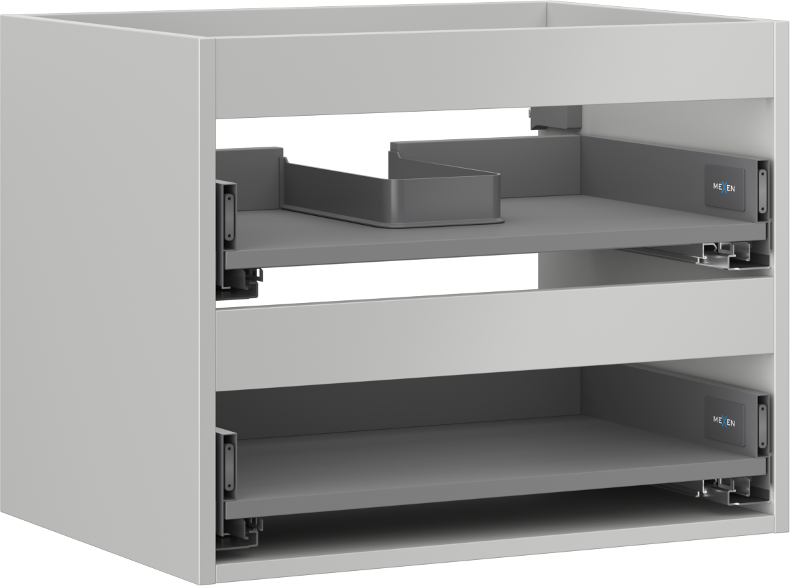 Izrez v predalu je zasnovan tako, da sprejme sifon, ki je nujen v umivalniških instalacijah. S tem je mogoče pohištvo popolnoma funkcionalno namestiti, ne da bi se morali odpovedati prostoru v predalu zaradi instalacije.