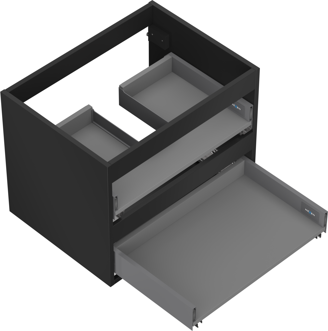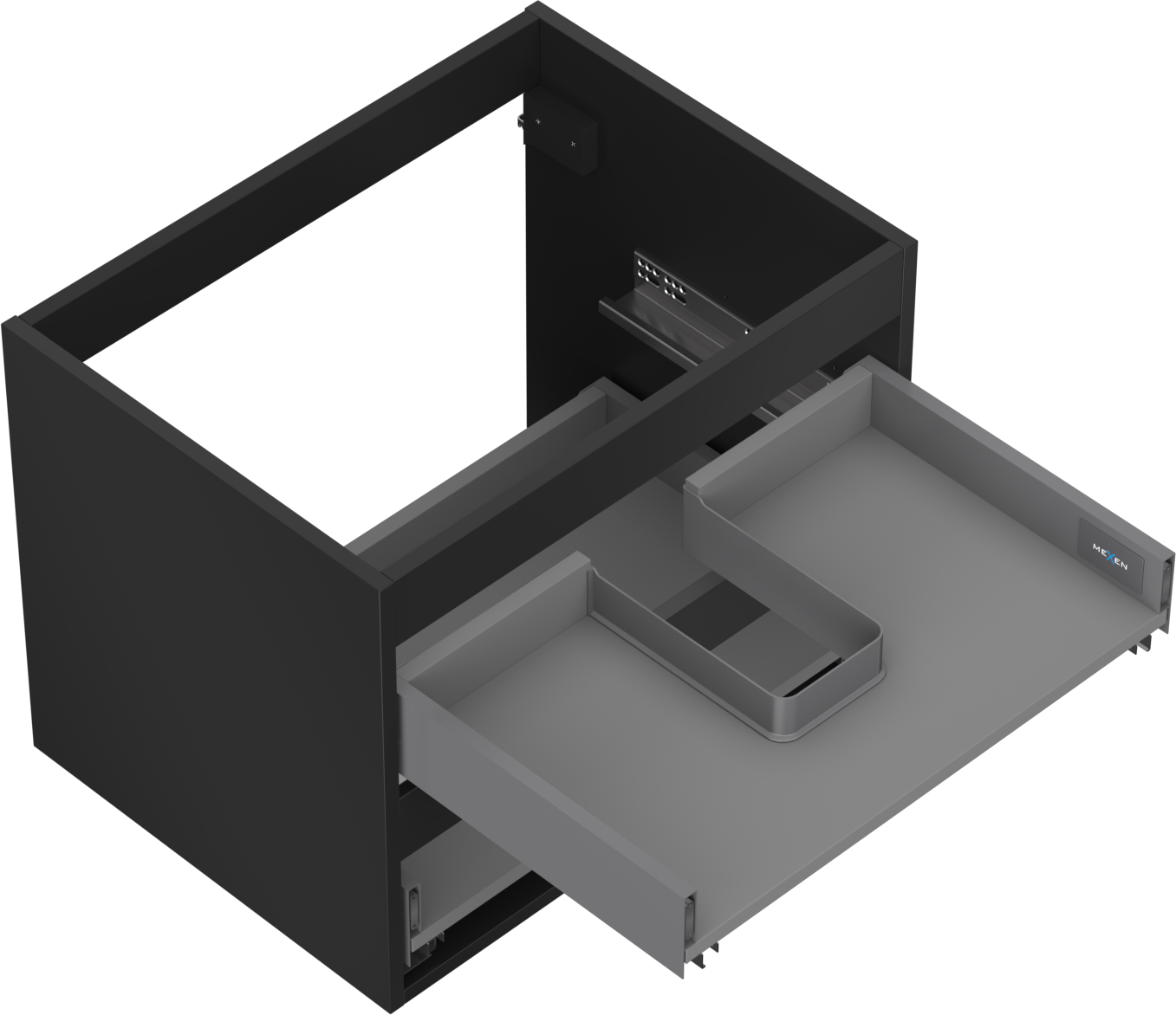 Izrez v predalu je zasnovan tako, da sprejme sifon, ki je nujen v umivalniških instalacijah. S tem je mogoče pohištvo popolnoma funkcionalno namestiti, ne da bi se morali odpovedati prostoru v predalu zaradi instalacije.