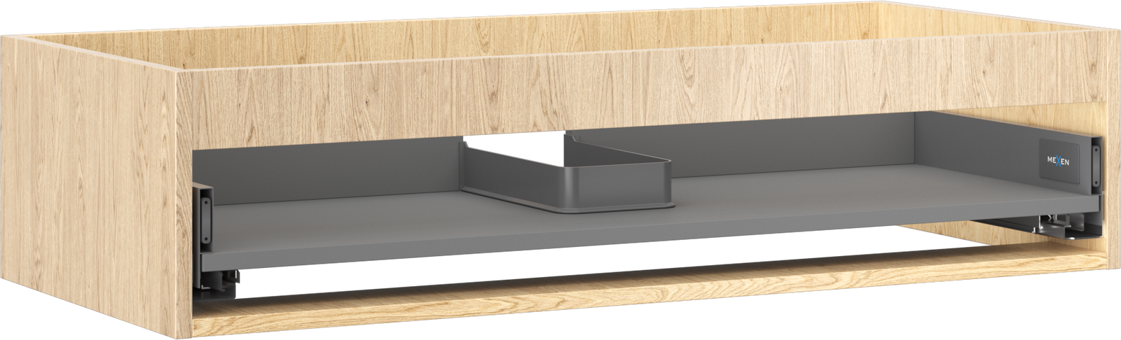 Izrez v predalu je zasnovan tako, da sprejme sifon, ki je nujen v umivalniških instalacijah. S tem je mogoče pohištvo popolnoma funkcionalno namestiti, ne da bi se morali odpovedati prostoru v predalu zaradi instalacije.