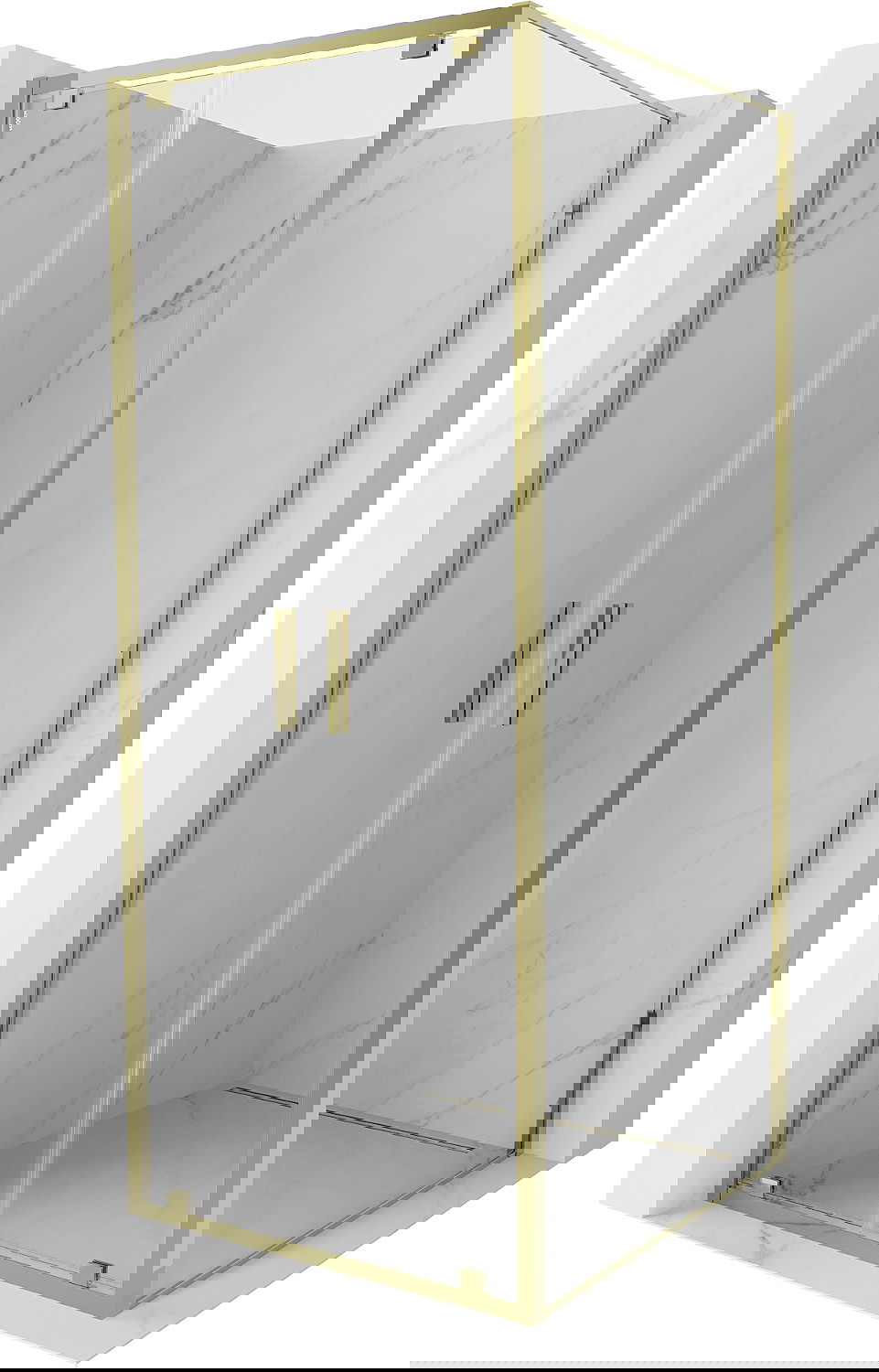 Mexen Exo nihajna tuš kabina 90 x 90 cm, prozorna, zlata - 8182-090-090-50-00