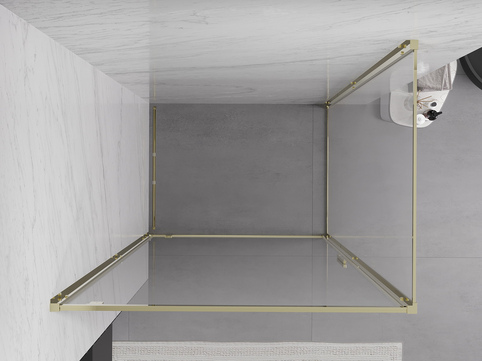 Priročen in udoben ročaj je izdelan iz trpežnega in odpornega kovine. Modna oblika v kombinaciji z zaključkom, ki ustreza barvi profilov, daje celoti sodoben in stilski videz, poudarjajoč estetiko vsake kopalnice.