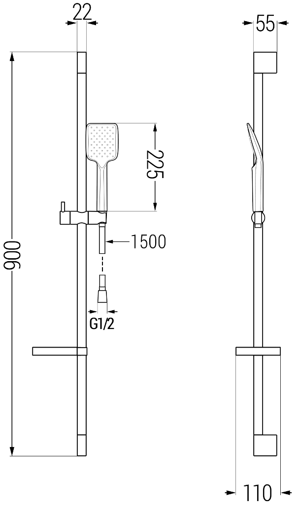Višina tuša: 225 mm