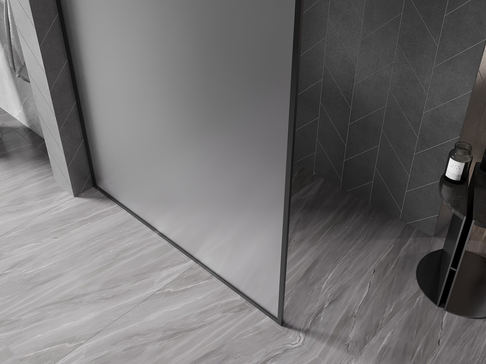 Mexen Kioto-XF Tuš stena Walk-in z okvirjem 160 x 202 cm, mraz 10 mm, črna - 800-160-104-70-30-X