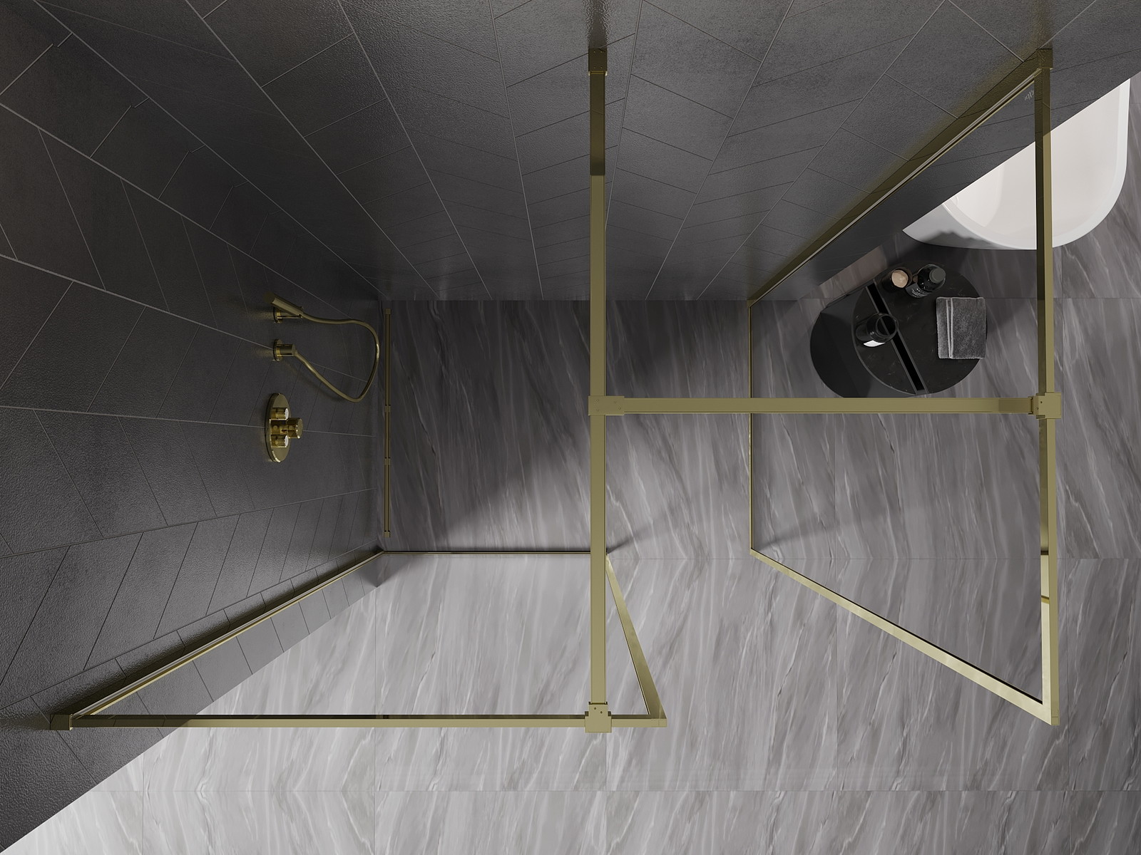 Mexen Kioto-XF tuš zaslon Walk-in z okvirjem 140 x 100 cm, prosojno 10 mm, zlata - 800-140-202-04-50-100-XF