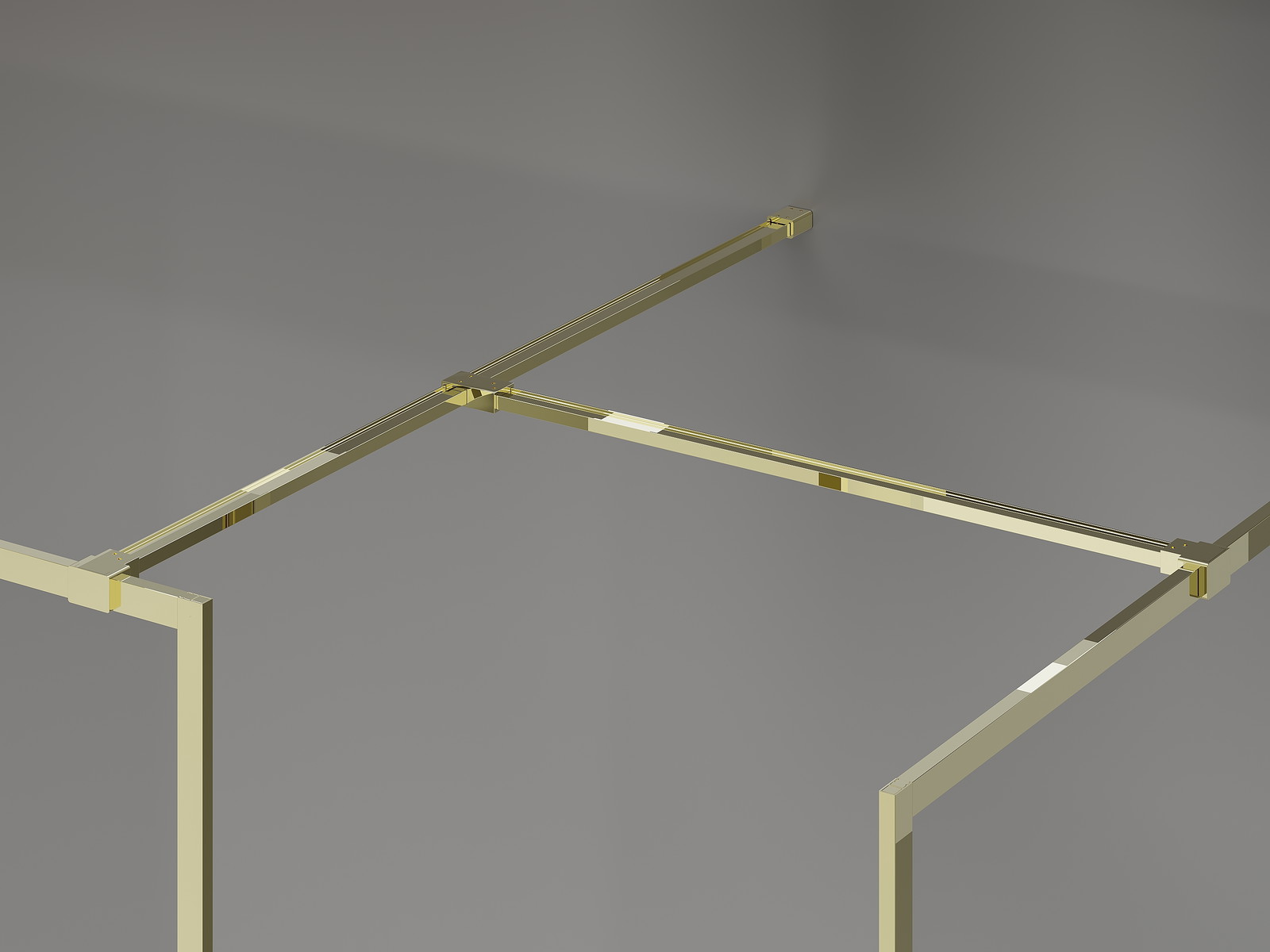 Mexen Kioto-XF je eleganten Walk-in tuš zaslon dimenzij 140 x 100 cm s prozornim kaljenim steklom debeline 10 mm. Profil visoke kakovosti iz aluminija in okvir v zlatem zaključku dodajata sodoben stil. Univerzalna montaža omogoča namestitev tako na desni, kot na levi strani, nosilec z možnostjo prilagoditve pa omogoča prilagoditev individualnim potrebam. Premaz za lažje čiščenje in možnost kompenzacije neravnin stene naredita zaslon izjemno praktičen. Namesti se lahko na tuš kadi ali neposredno na ploščice.