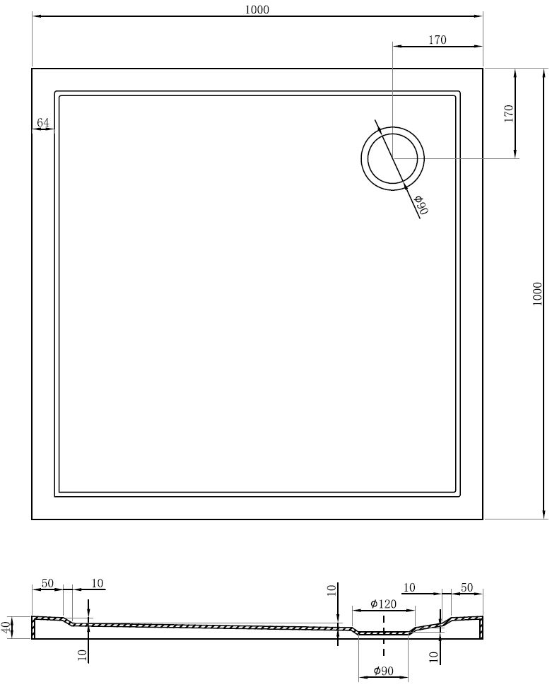 Premer odtoka: 90 mm