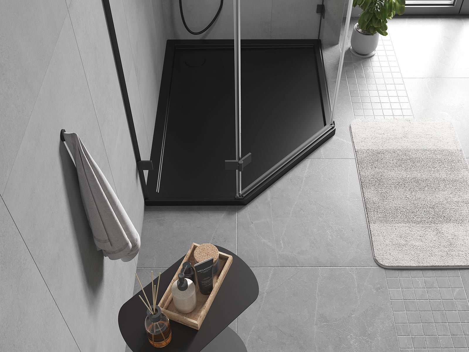 Tuš kad ima nizek prag, kar olajša vstopanje in izstopanje iz prhe. Dodaja prostoru edinstven in brezčasen videz, zaradi česar postane kopalnica udoben in estetski prostor za vsakodnevno sprostitev.