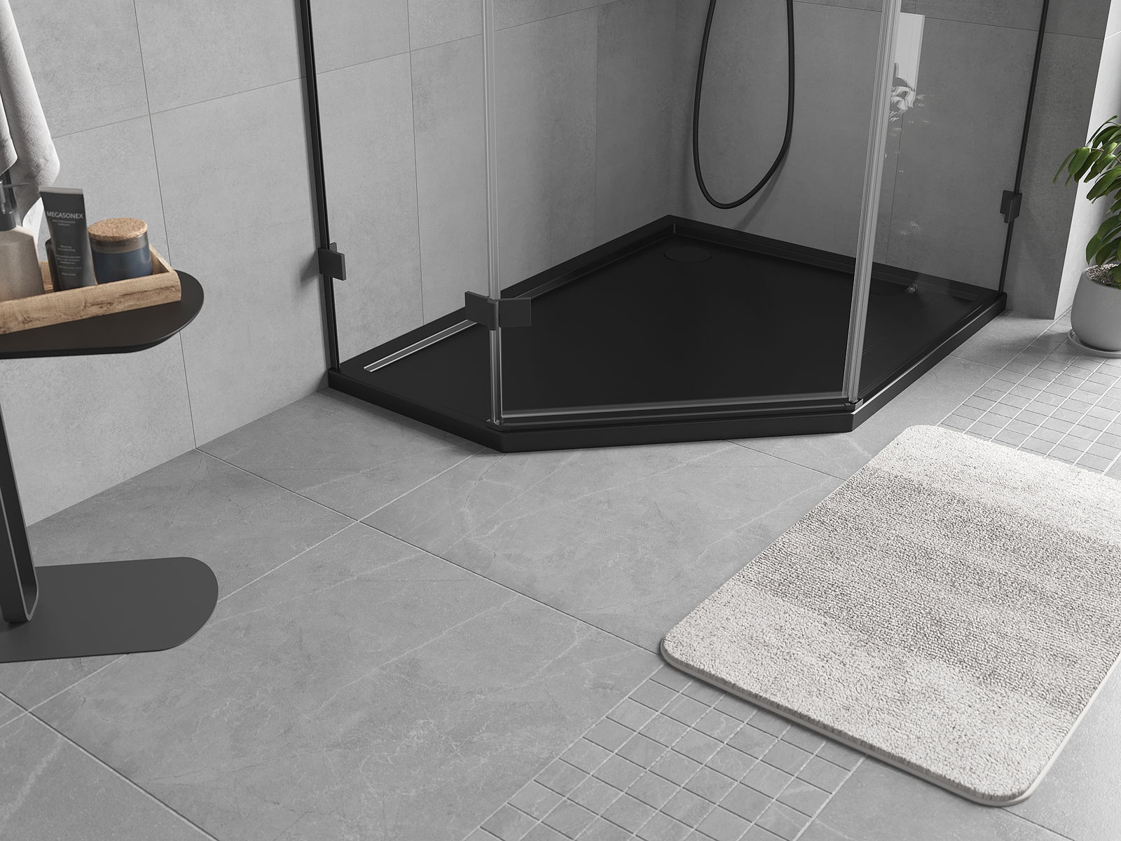 Mexen Flow pentagonalna plitka desna 100 x 80 cm, črna mat - 46P708010R