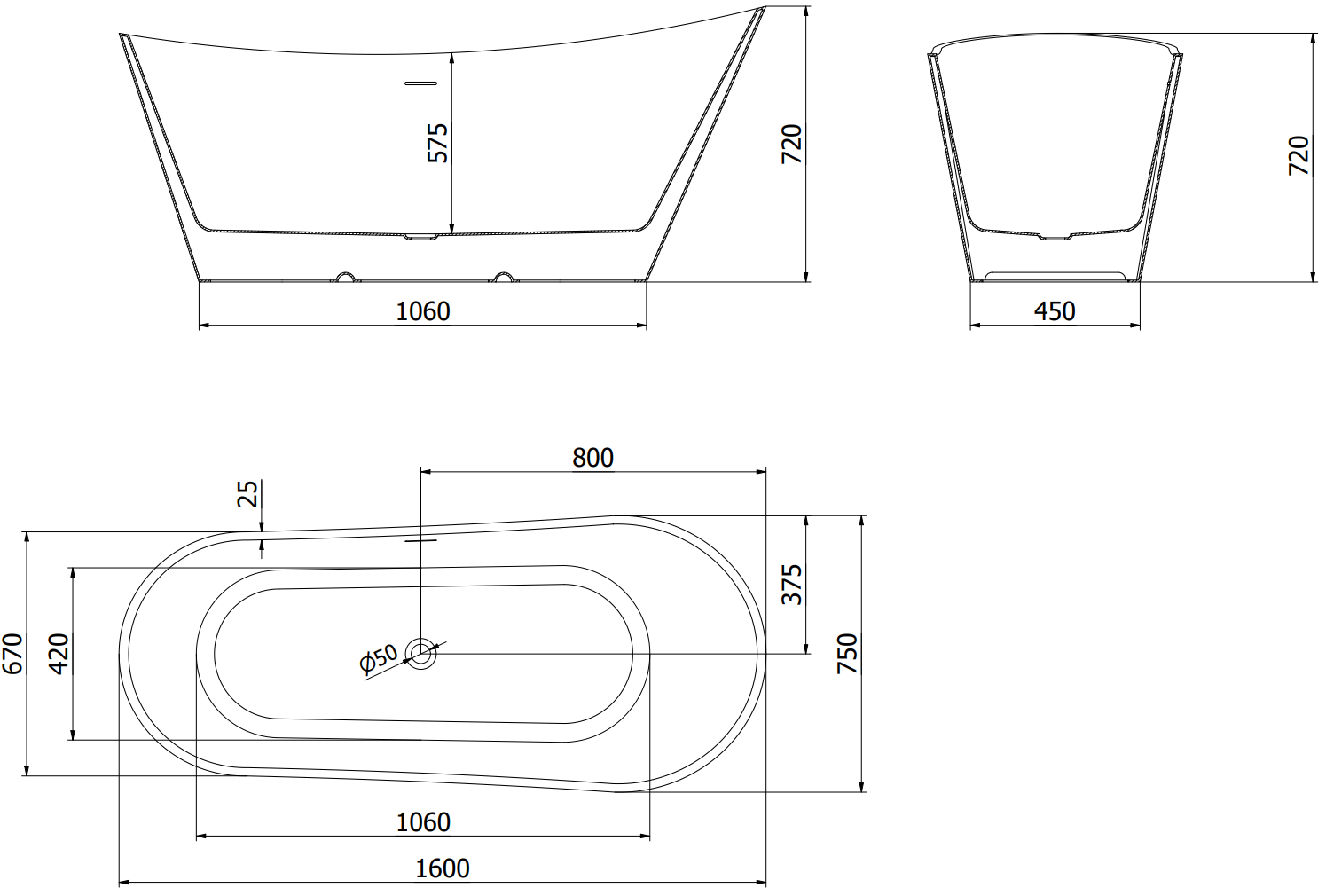 Mexen Dora samostoječa kopalna kad 160 x 75 cm, bela, črni preliv - 52071607500-70