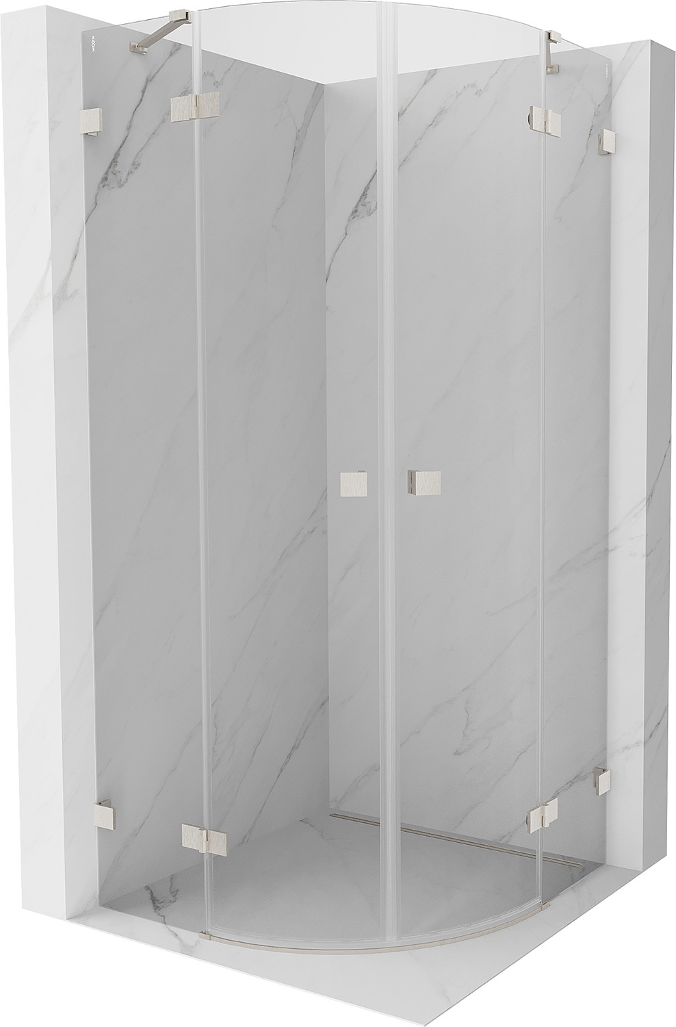 Mexen Lunar polkrožna tuš kabina z nihajnimi vrati 90 x 90 cm, prozorna, brušen nikelj - 833-090L-090P-97-00