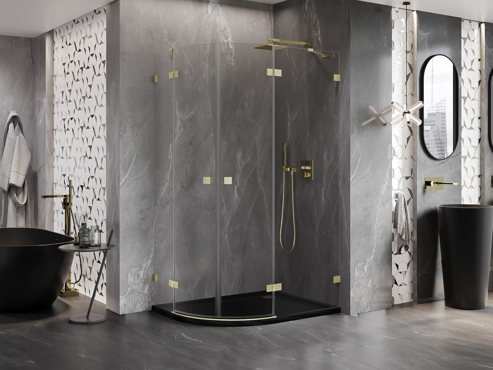 Sponke in tečaji so izdelani iz zelo trpežne medenine in dodatno ustvarjajo poravnano površino stekla. To je odlična izbira, ki združuje eleganco, vzdržljivost in sodoben dizajn. Zaradi takšnih rešitev prha pridobi na estetiki, hkrati pa olajšajo vzdrževanje čistoče.
