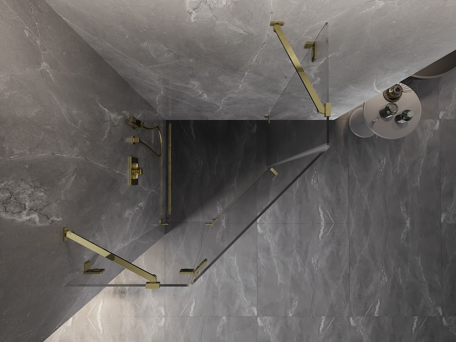 Mexen Lunar petkotni tuš kabina, nihajna leva 100 x 100 cm, prozorna, zlata - 831-100L-100P-50-00-L