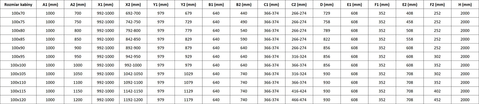 Tuš kabine, vrata in stene so standardno prilagojene za montažo na tuš kadi določenih dimenzij. Te dimenzije so navedene v imenu ali opisu izdelka. Vendar je treba upoštevati, da se dejanske mere elementov lahko nekoliko razlikujejo od nazivnih vrednosti. V primeru načrtovane montaže neposredno na tla je priporočljivo natančno preveriti zunanje mere in razporeditev elementov v skladu s tehnično risbo.