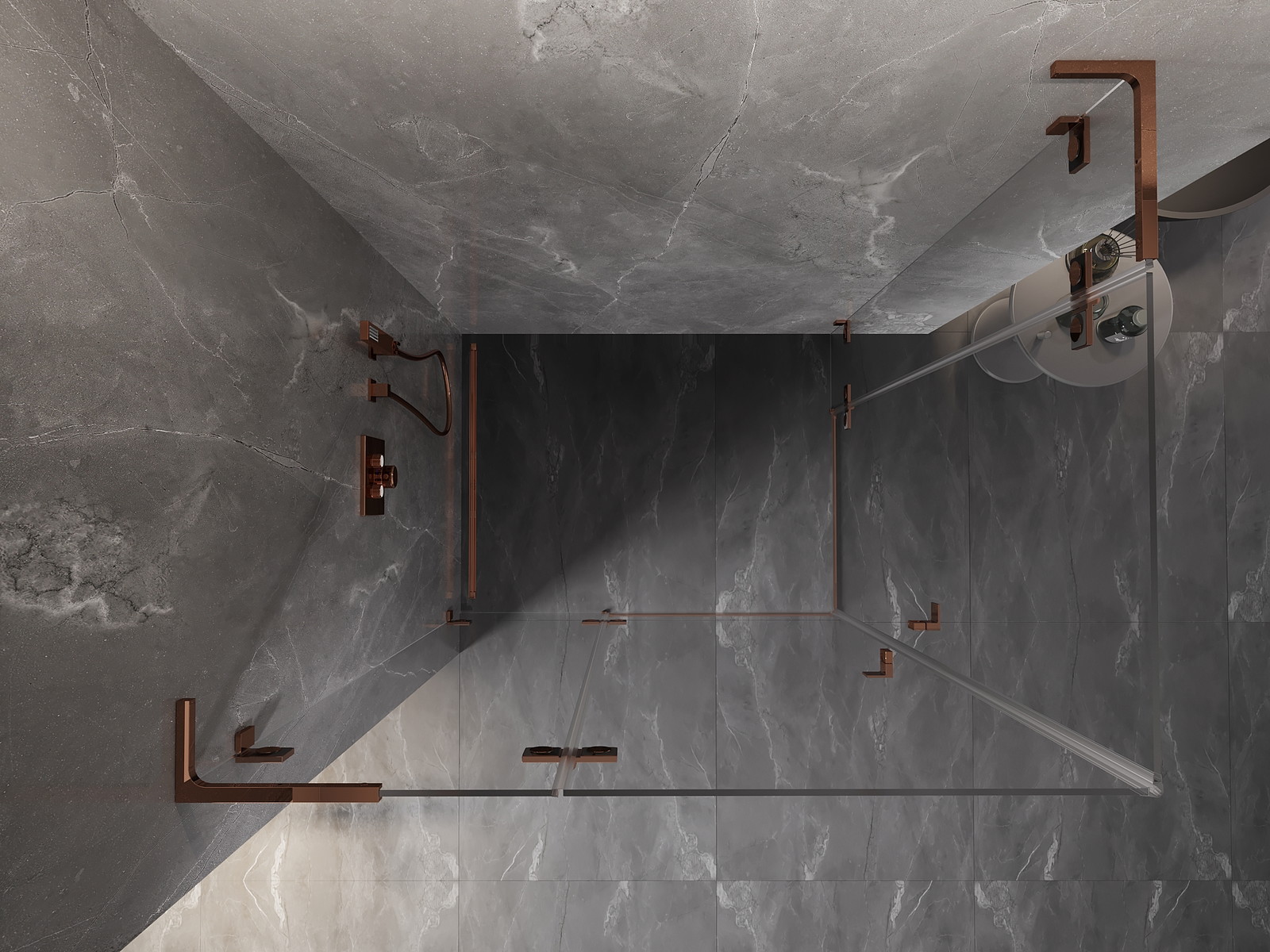 Mexen Lunar L Duo leva nihajna tuš kabina 95 x 90 cm, prozorna, rožnato zlato - 834L-095L-090P-60-00