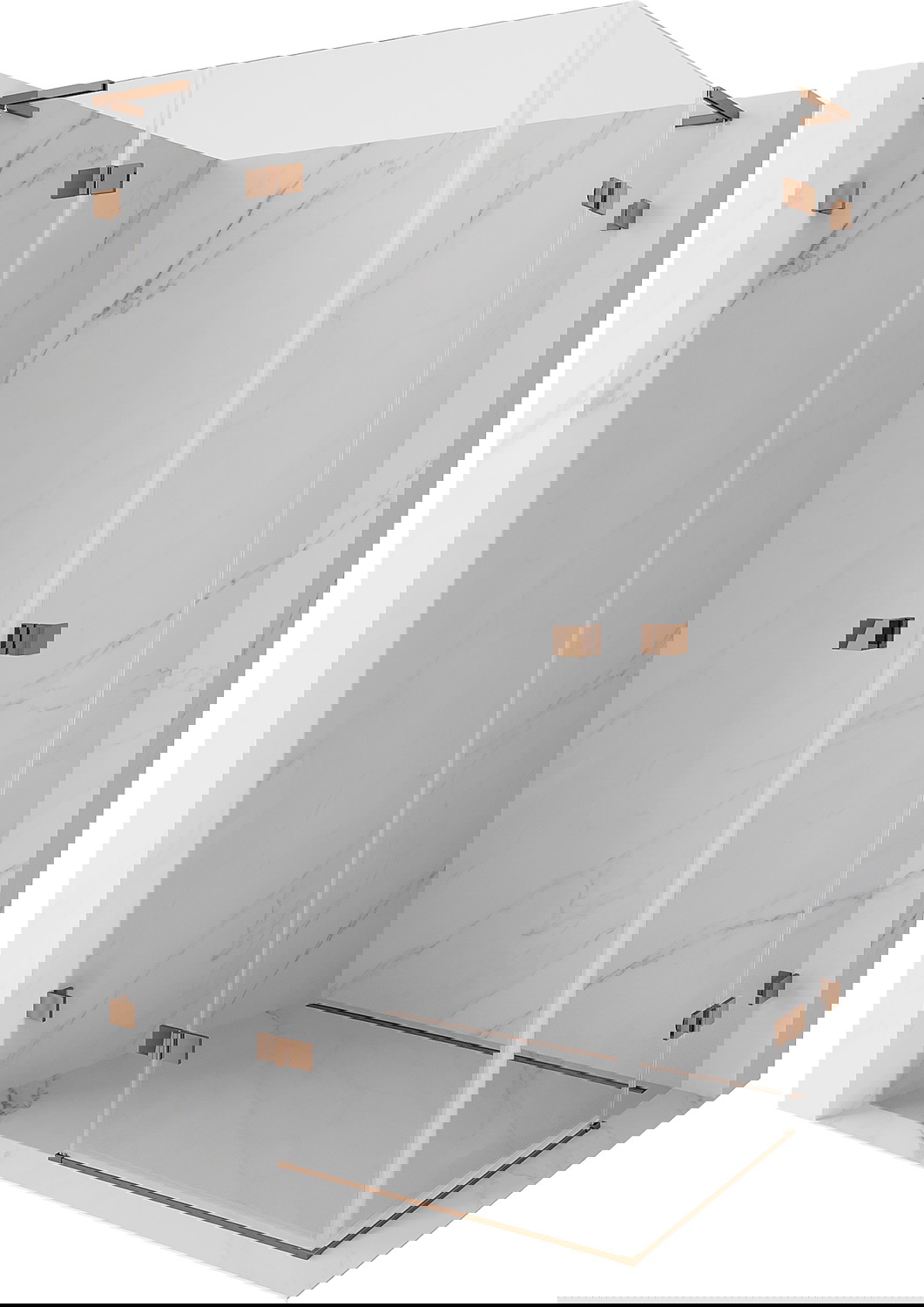 Sponke in tečaji so izdelani iz zelo trpežne medenine in dodatno ustvarjajo poravnano površino stekla. To je odlična izbira, ki združuje eleganco, vzdržljivost in sodoben dizajn. Zaradi takšnih rešitev prha pridobi na estetiki, hkrati pa olajšajo vzdrževanje čistoče.