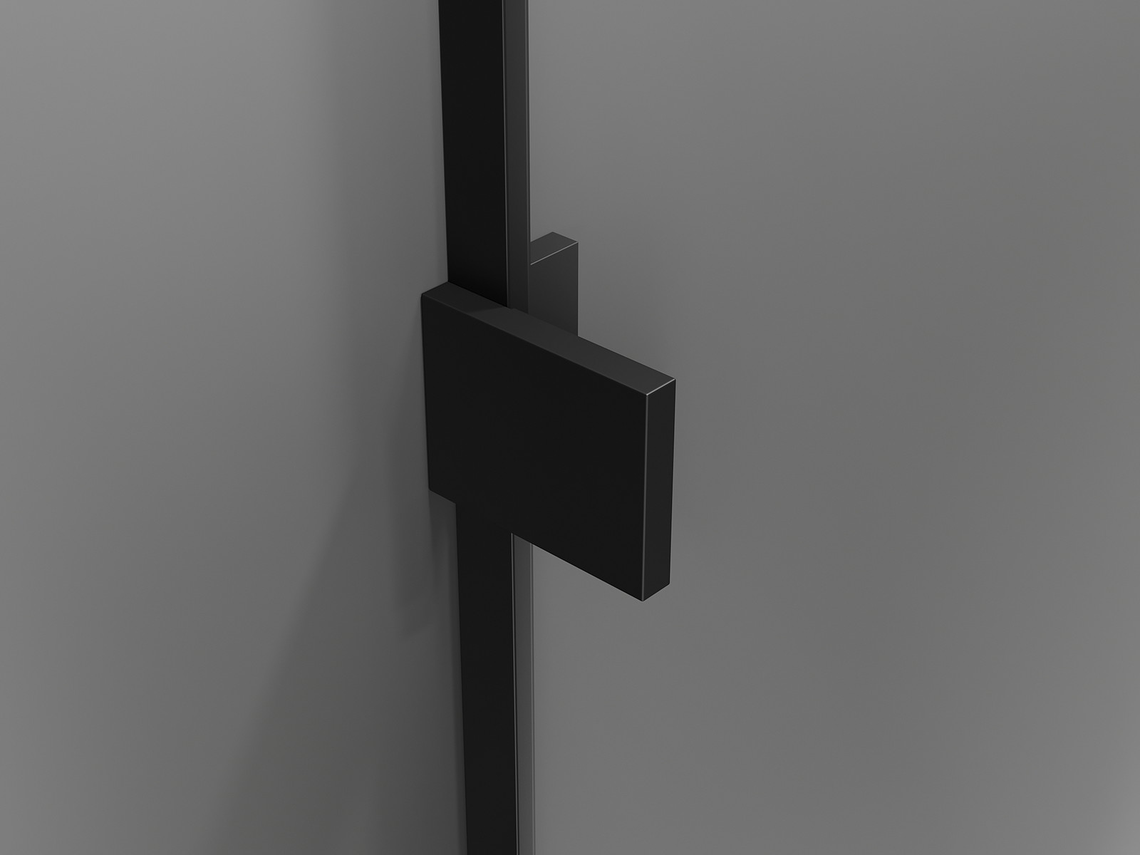 Priročen in udoben ročaj je izdelan iz trpežnega in odpornega kovine. Modna oblika v kombinaciji z zaključkom, ki ustreza barvi profilov, daje celoti sodoben in stilski videz, poudarjajoč estetiko vsake kopalnice.