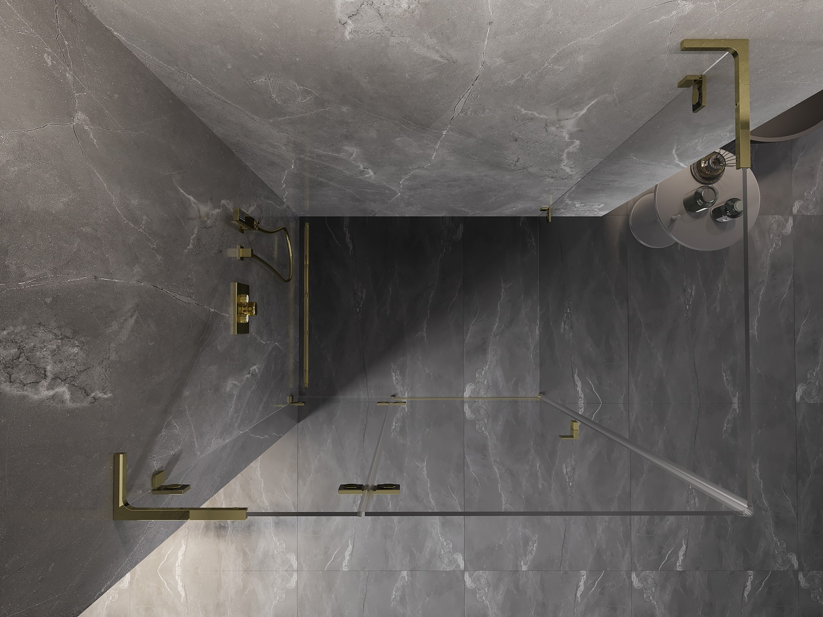 Mexen Lunar L leva krilna tuš kabina 85 x 80 cm, prozorno, zlato - 834L-085-080-50-00-L