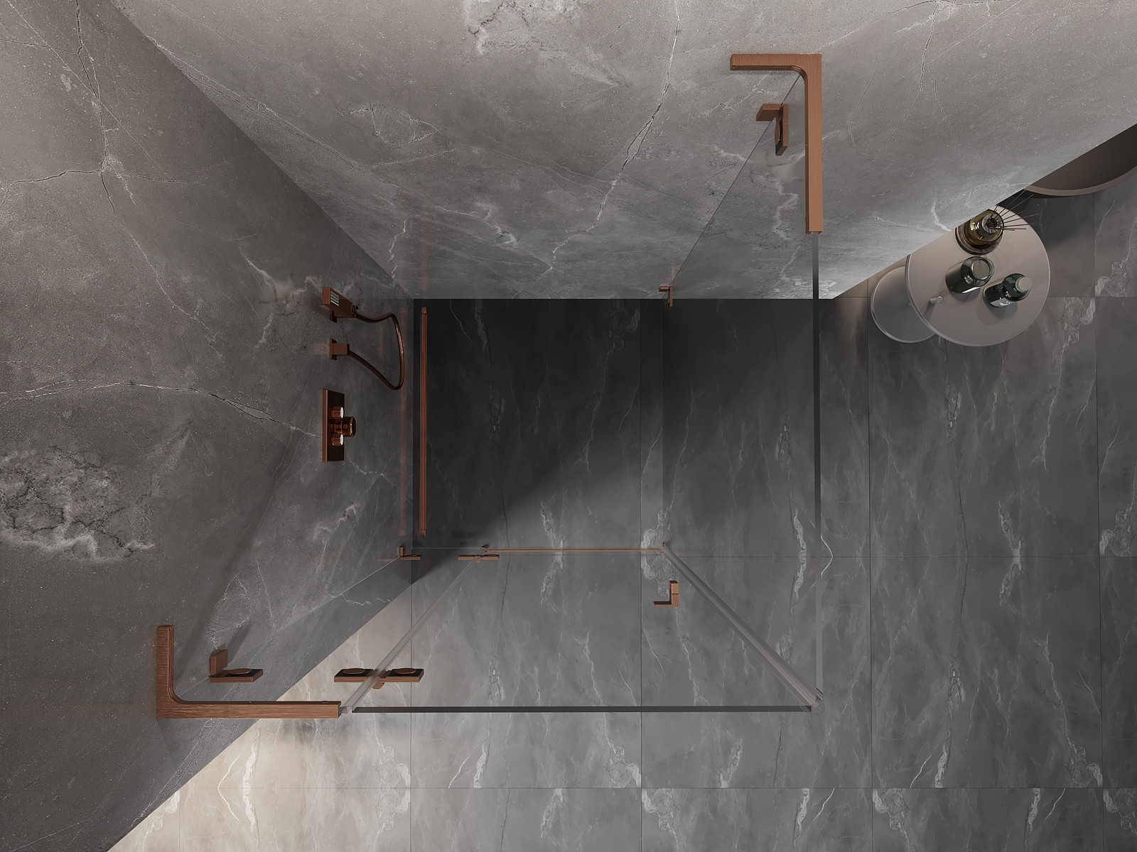 Mexen Lunar L tuš kabina nihajna leva 100 x 100 cm, prozorna, brušena medenina - 834L-100-100-65-00-L