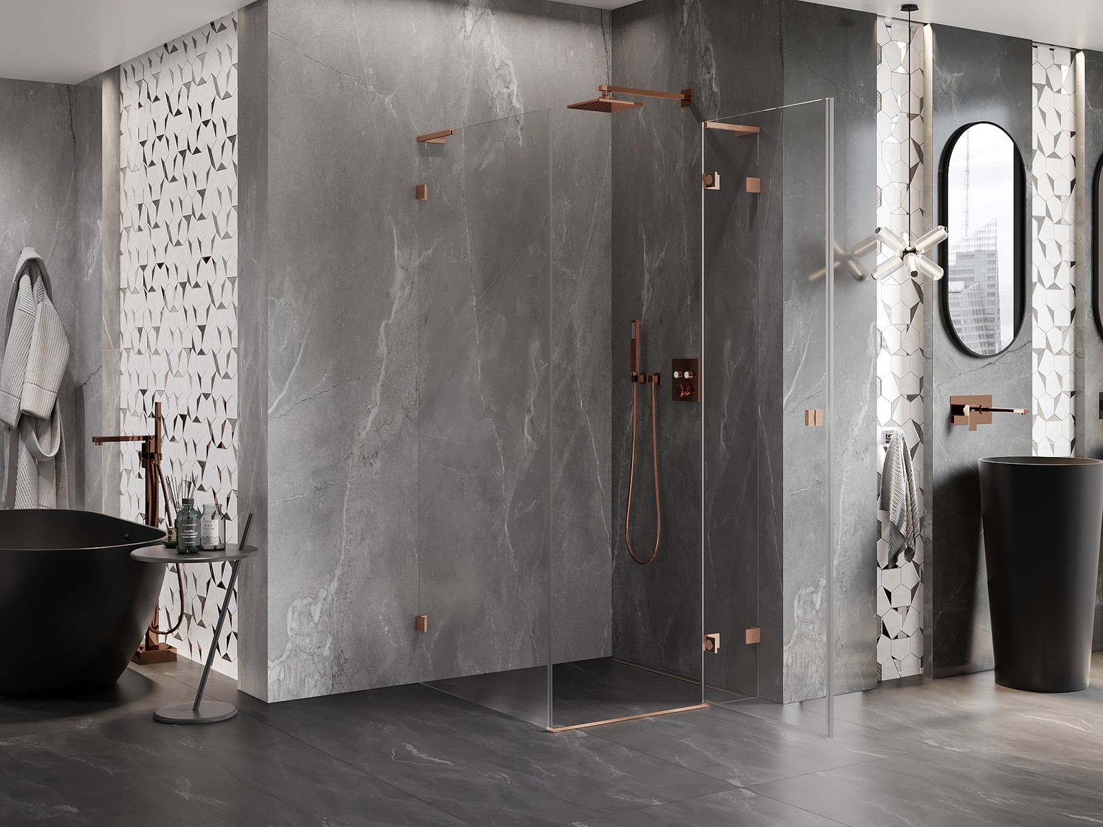 Sponke in tečaji so izdelani iz zelo trpežne medenine in dodatno ustvarjajo poravnano površino stekla. To je odlična izbira, ki združuje eleganco, vzdržljivost in sodoben dizajn. Zaradi takšnih rešitev prha pridobi na estetiki, hkrati pa olajšajo vzdrževanje čistoče.