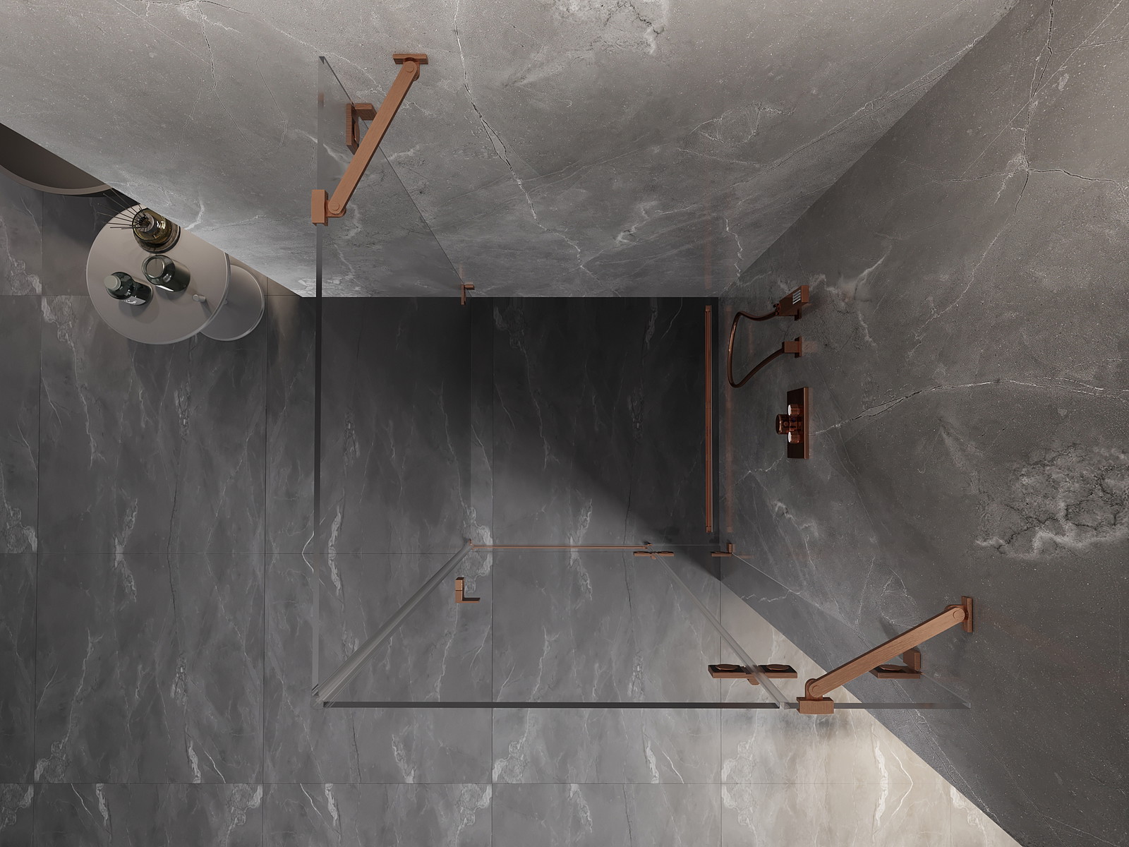 Mexen Lunar prha desna tuš kabina 100 x 100 cm, prozorna, brušen baker - 834-100-100-65-00-P