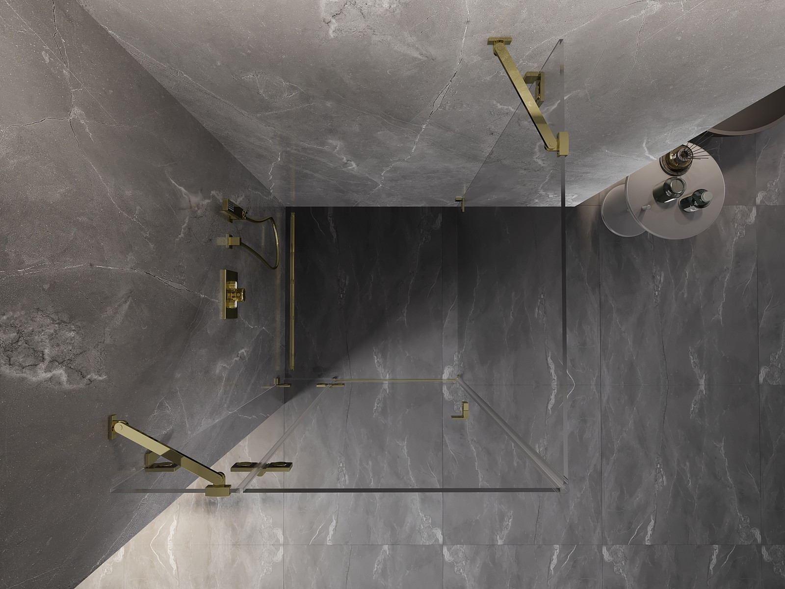 Mexen Lunar nagibna pršna kabina leva 90 x 90 cm, prozorna, zlata - 834-090-090-50-00-L