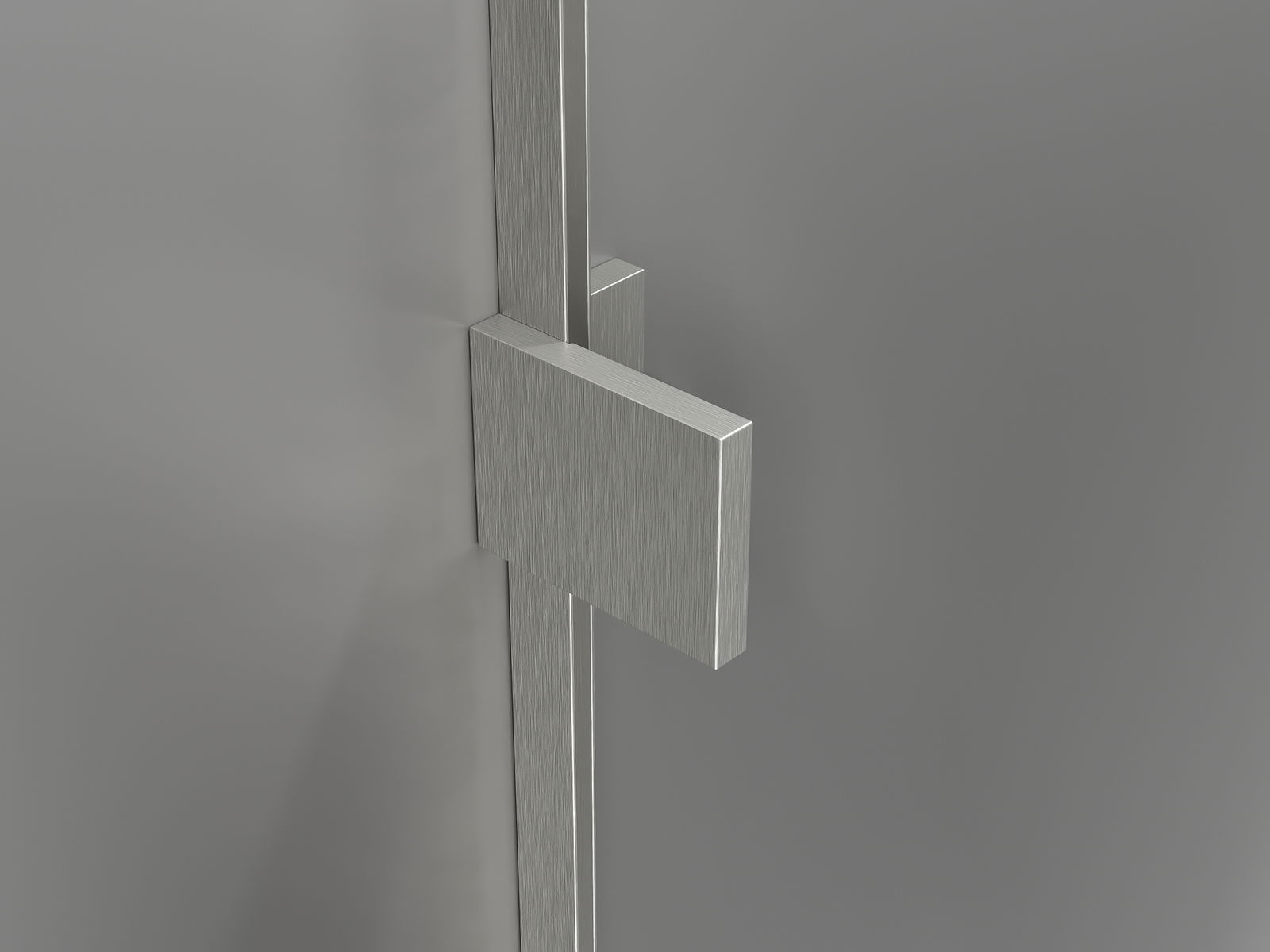 Priročen in udoben ročaj je izdelan iz trpežnega in odpornega kovine. Modna oblika v kombinaciji z zaključkom, ki ustreza barvi profilov, daje celoti sodoben in stilski videz, poudarjajoč estetiko vsake kopalnice.