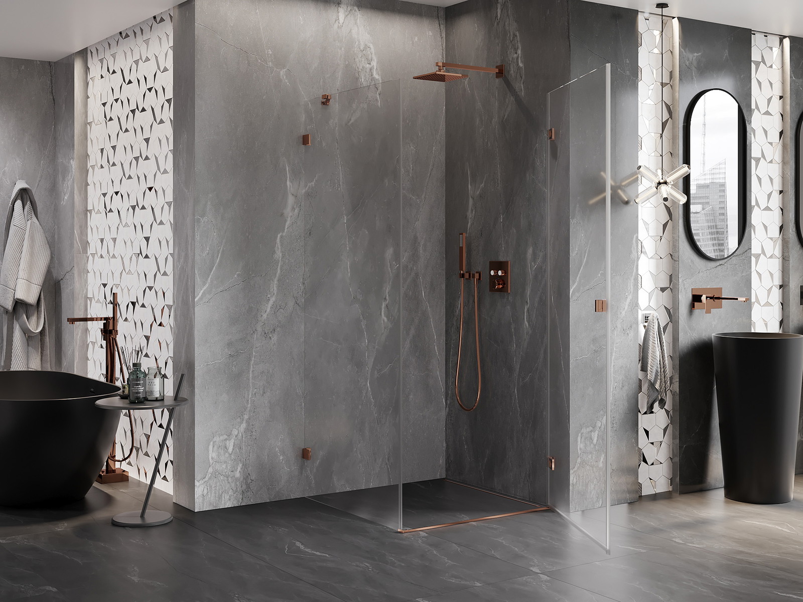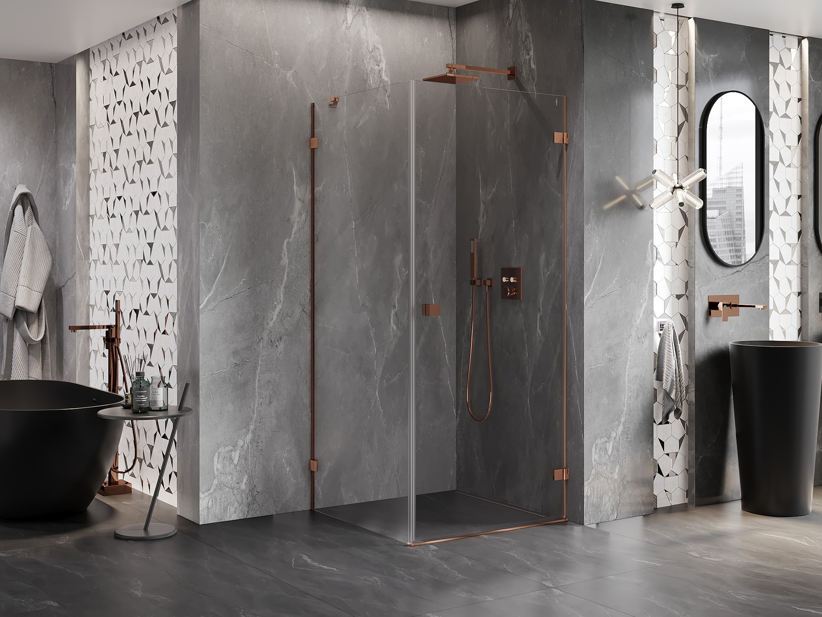 Mexen Lunar-B je stilska tuš kabina dimenzij 90x90 cm, idealna za moderne kopalnice. Ponaša se z elegantno izvedbo v rožnatem zlatu. Opremljena je z odpiralnimi vrati iz kaljenega stekla (6 mm vrata, 8 mm stena) in prozorne barve, kar daje lahkotnost in eleganco. Višina 200 cm zagotavlja udobje pri uporabi, raznolike možnosti montaže pa omogočajo prilagodljivost pri razporeditvi. Prevleka za lažje čiščenje ter medeninaste kljuke usklajene s površino stekla povečujejo funkcionalnost izdelka. Dva sistema pritrditve in možnost prilagajanja širine omogočata, da se prilagodi vsaki kopalnici, tako na tuš kad kot tudi na ploščice. Mehanizem za dviganje vrat in magnetni trak z elastomernimi tesnili zagotavljajo tesnost in udobje med prhanjem.