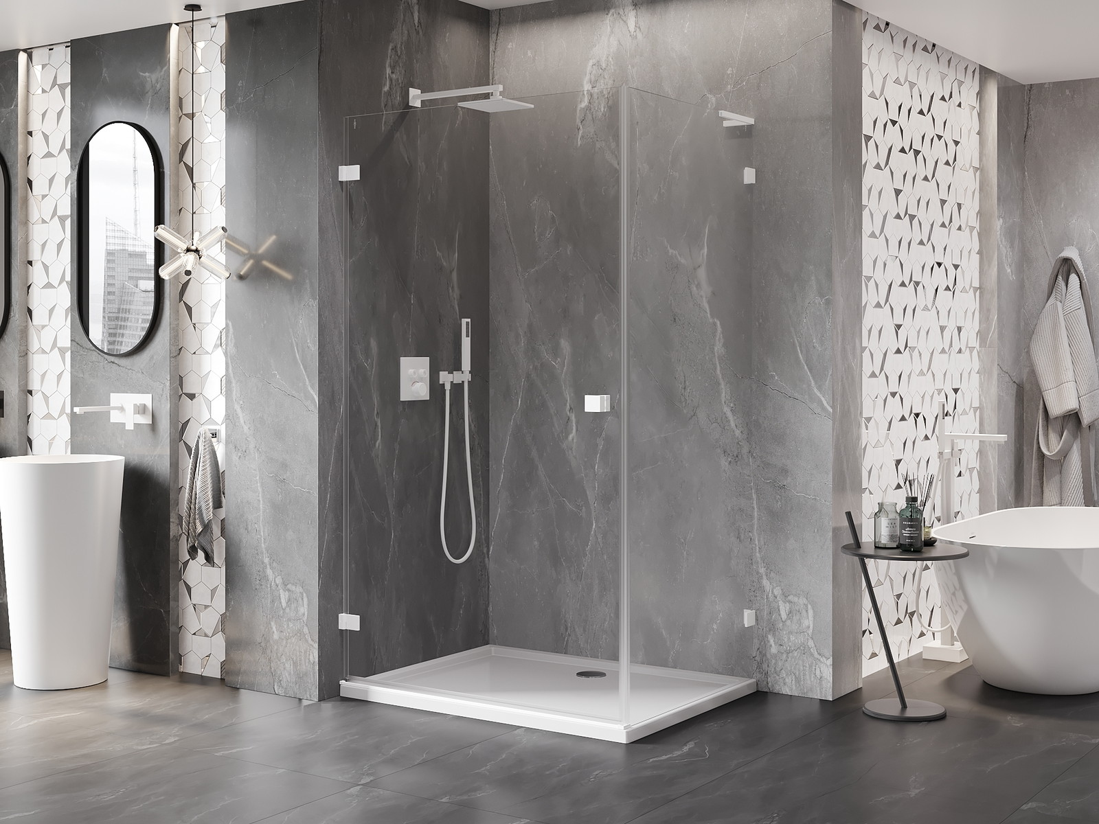 Mexen Lunar-B L nihajna pršna kabina leva 90 x 80 cm, prosojna, bela - 832L-090-080-20-00-L