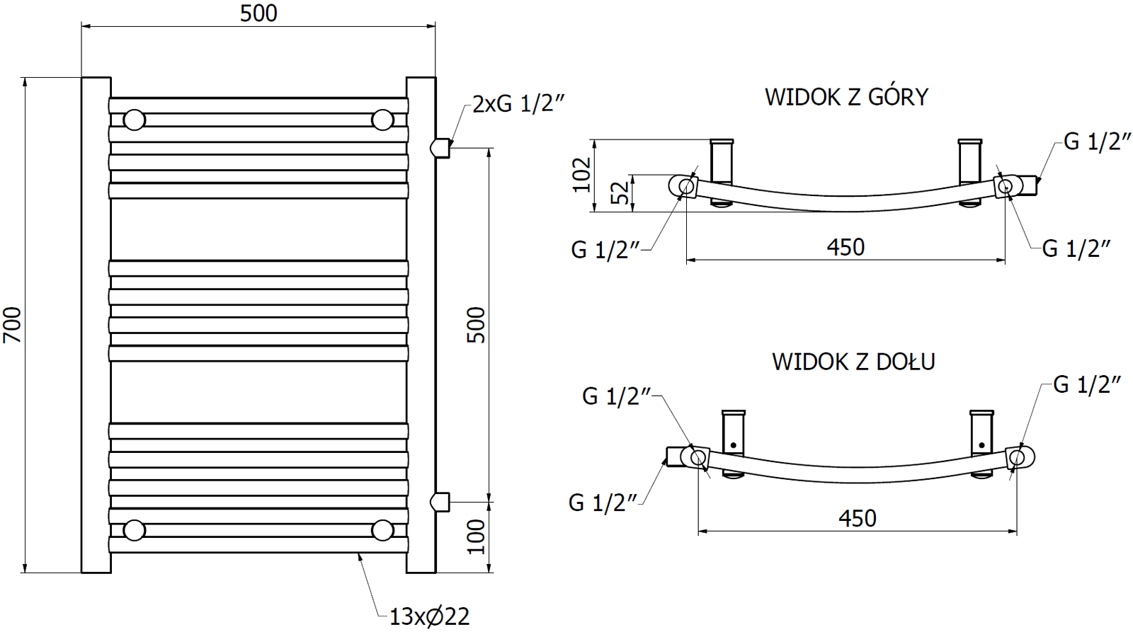 - 2xG ½” bočni z desne strani