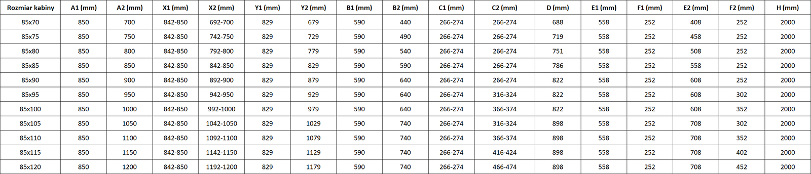Tuš kabine, vrata in stene so standardno prilagojene za montažo na tuš kadi določenih dimenzij. Te dimenzije so navedene v imenu ali opisu izdelka. Vendar je treba upoštevati, da se dejanske mere elementov lahko nekoliko razlikujejo od nazivnih vrednosti. V primeru načrtovane montaže neposredno na tla je priporočljivo natančno preveriti zunanje mere in razporeditev elementov v skladu s tehnično risbo.